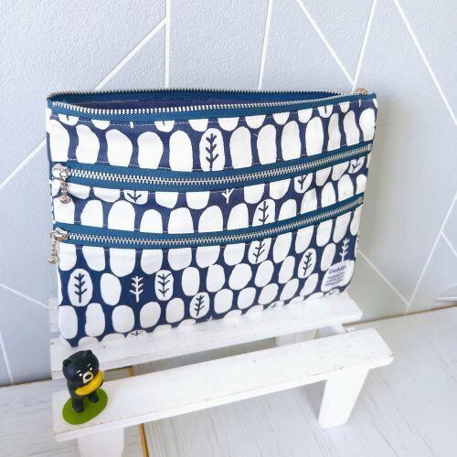 【受注作成】3ファスナーポーチ(グレーtree)
