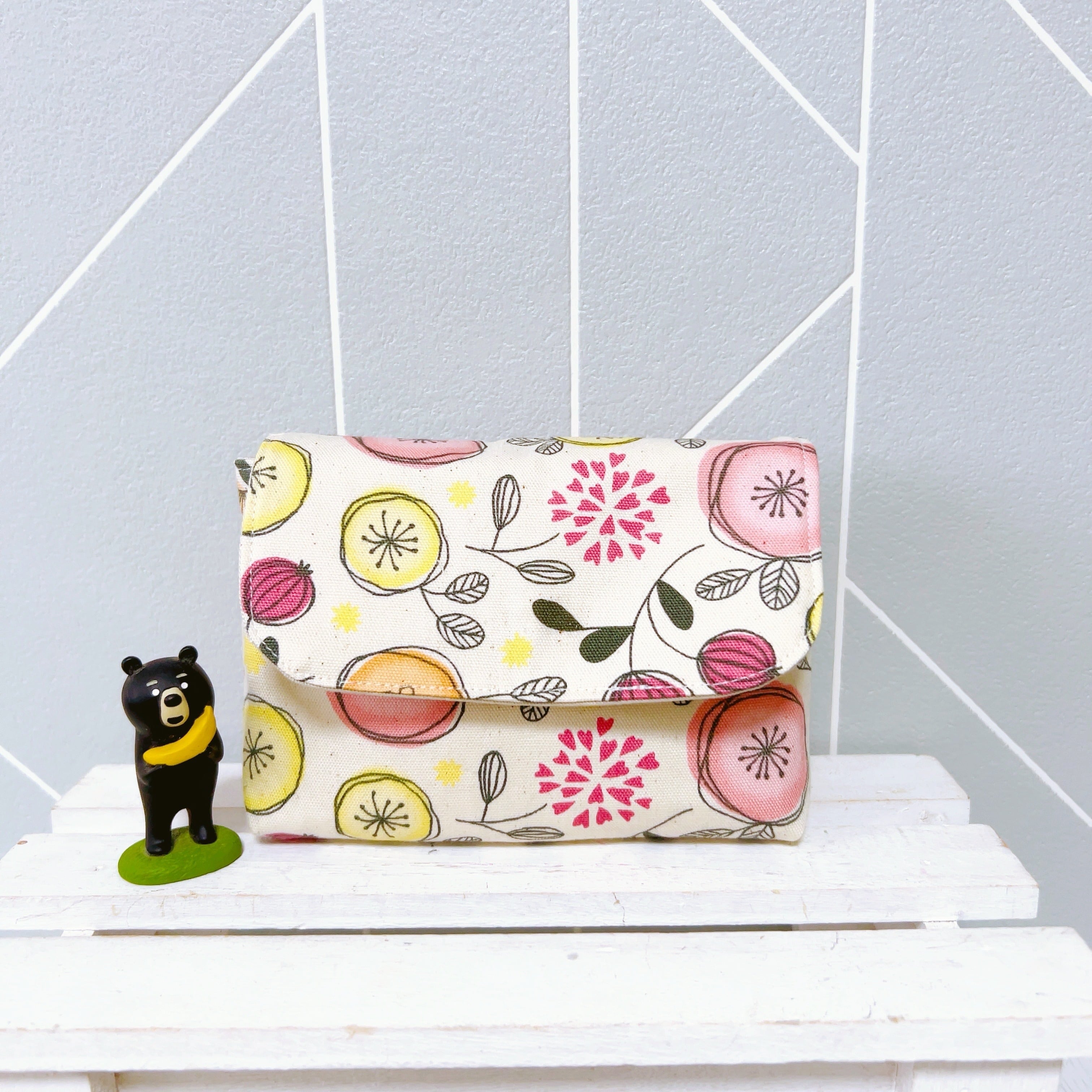 デジカメケース フラップ付きポーチ(ボタンみたいなお花)