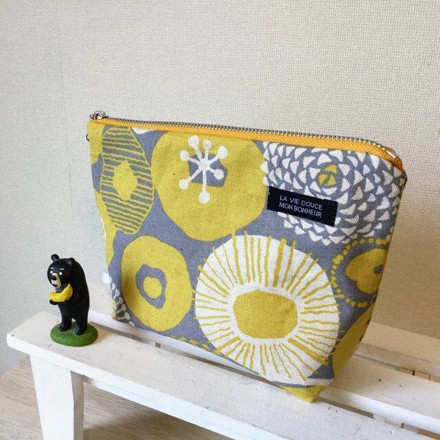 ベーシックなポーチです。大きさは、縦14㌢、横21㌢、まち7㌢です。