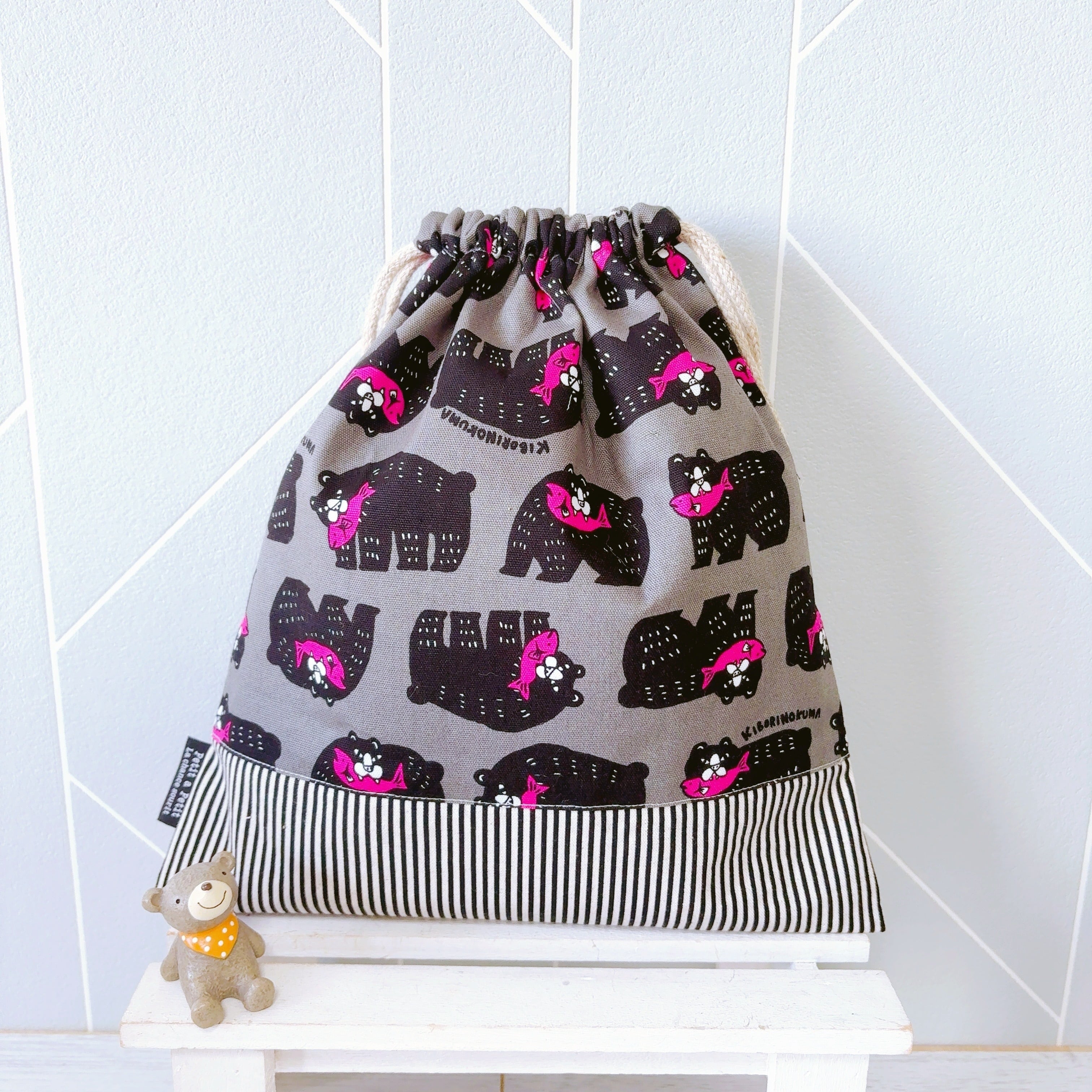 【受注製作】巾着 お着替え袋 体操着袋(グレーくま)