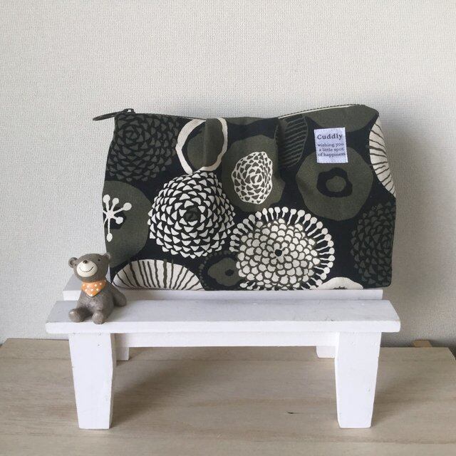 ふっくらタックポーチ(北欧カーキ)