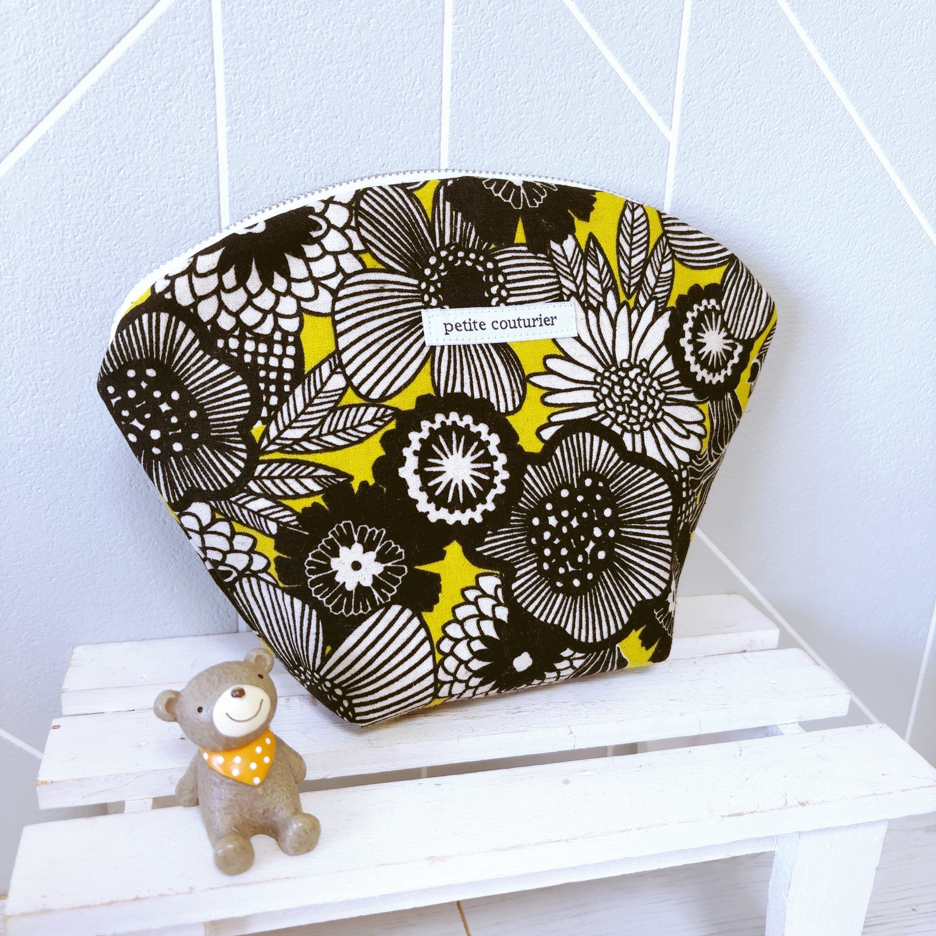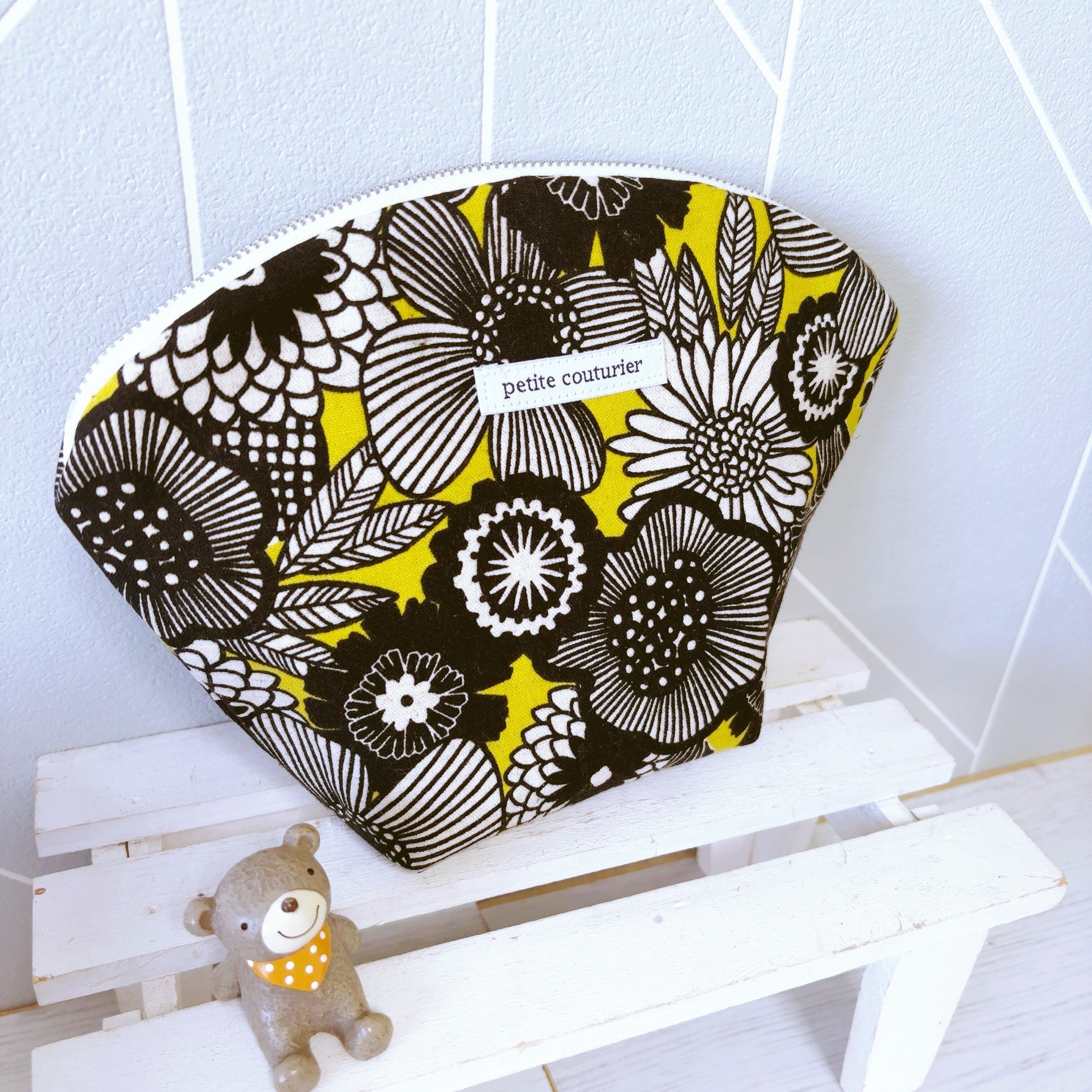 【受注作成】シェルポーチ プレゼントに最適(黄色花)