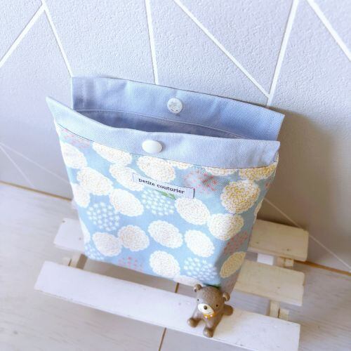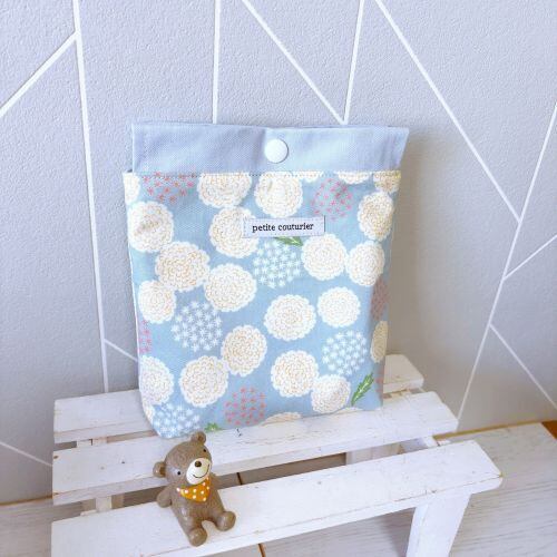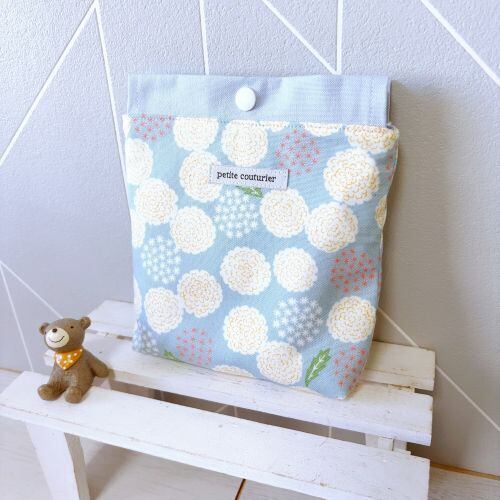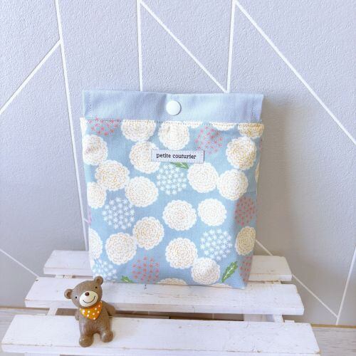 【受注製作】プレゼントに最適☆スナップボタン付きポーチ☆お化粧ポーチ(水色たんぽぽ)
