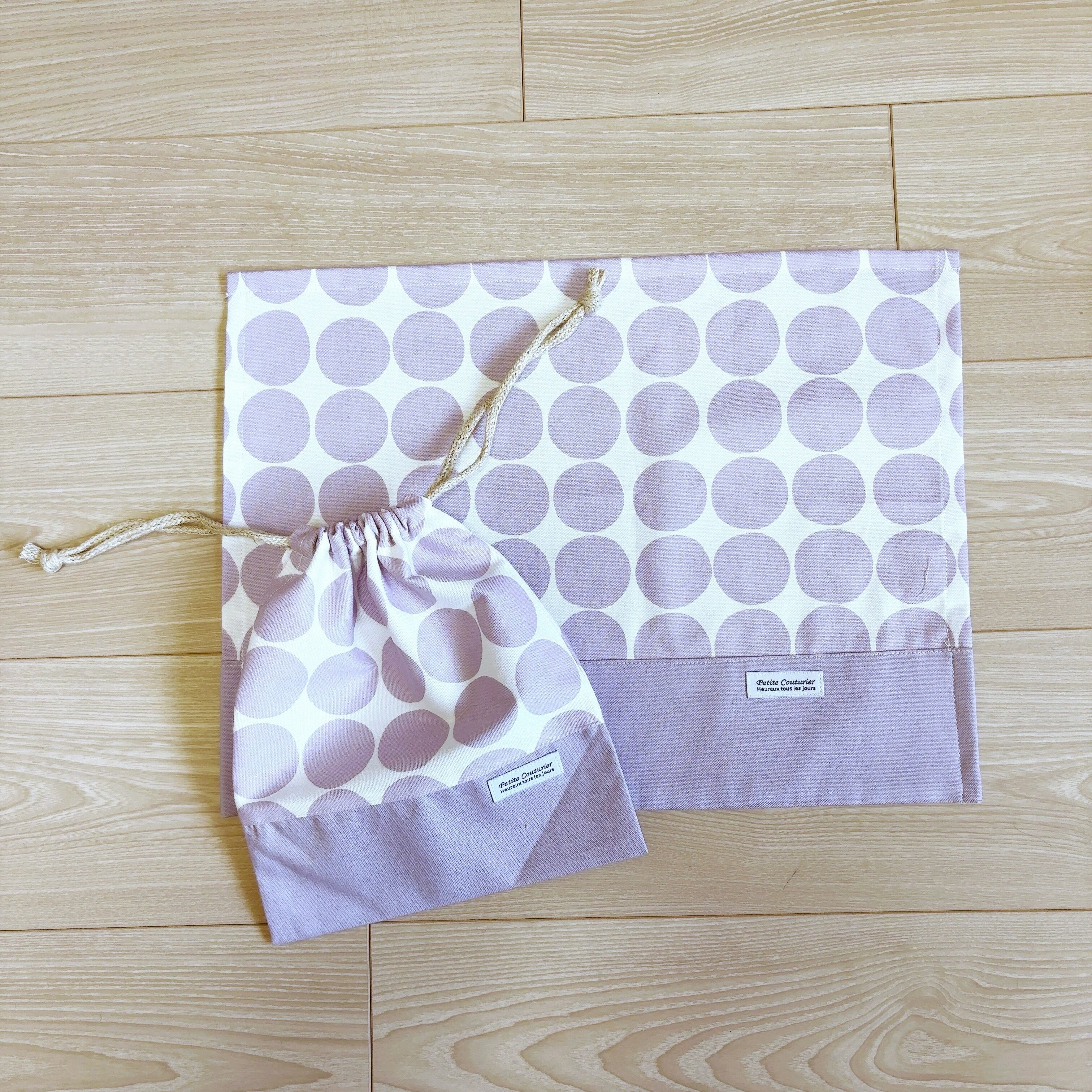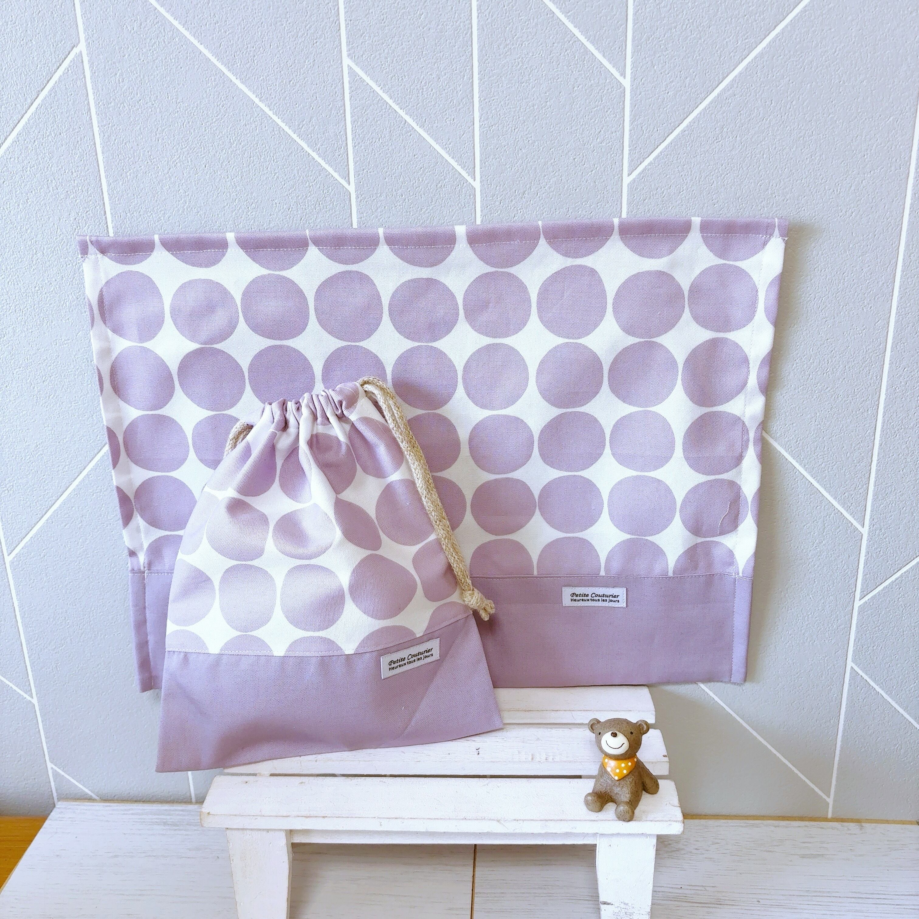 【受注製作】《入園入学グッズ》給食袋、ランチョンマットセット(紫ドット)