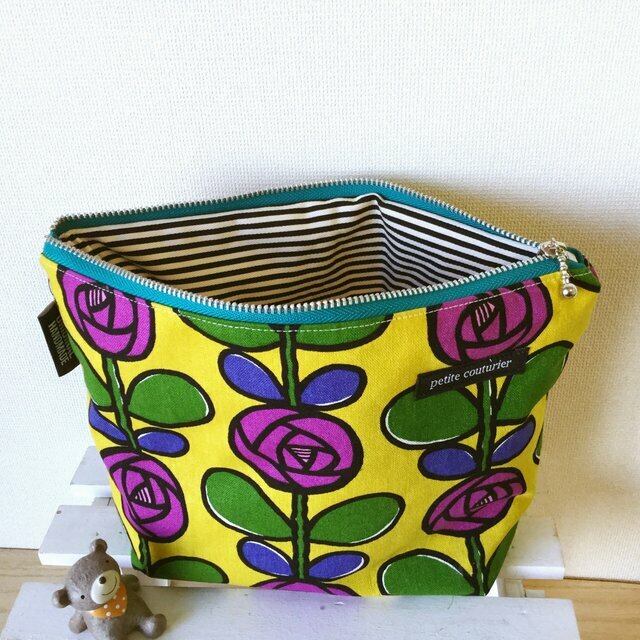 ベーシックな台形ポーチ大(レトロローズ マスタード)