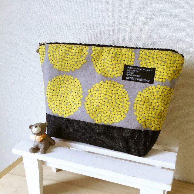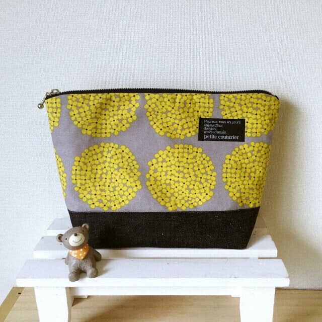 ベーシックな台形ポーチ大(黄色 ブーケ)
