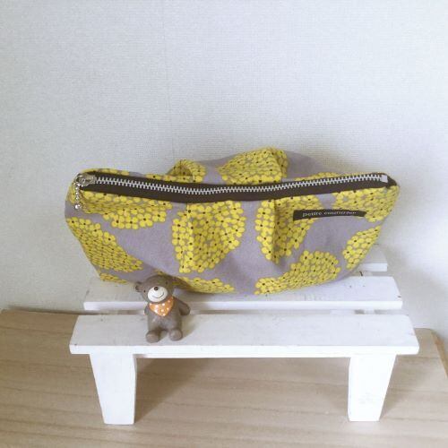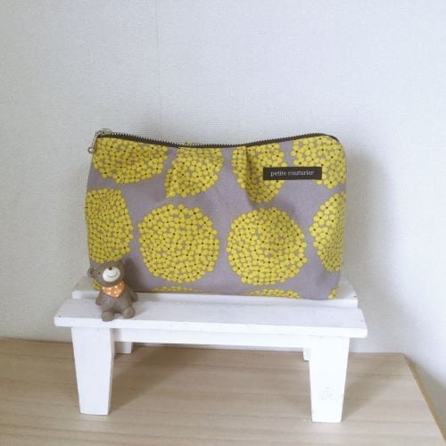 【受注作成】ふっくらタックポーチ(北欧グレーブーケ)