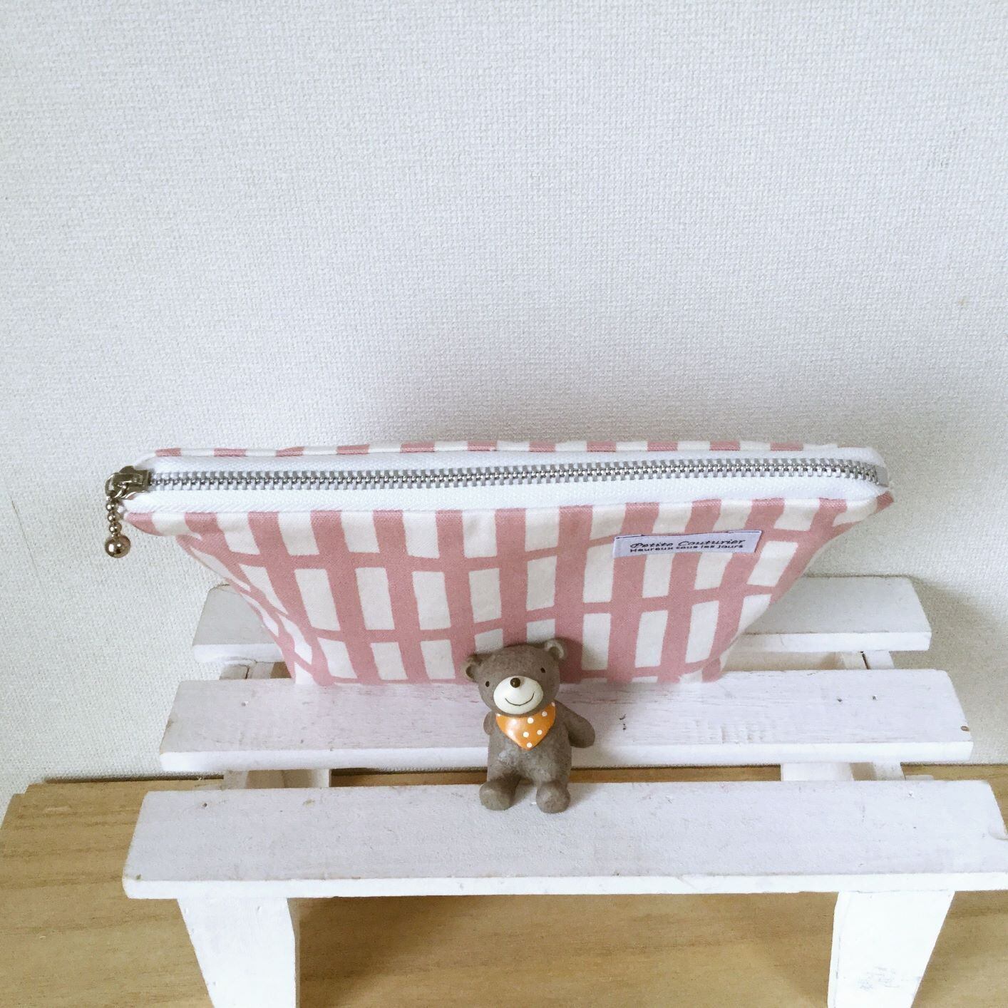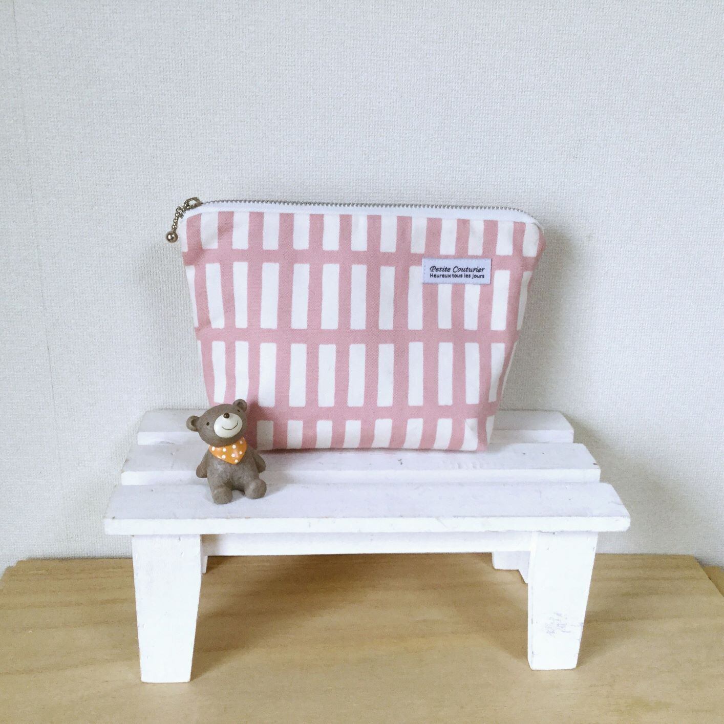 プレゼントに最適 ベーシックな台形ポーチ(北欧調ピンク四角)