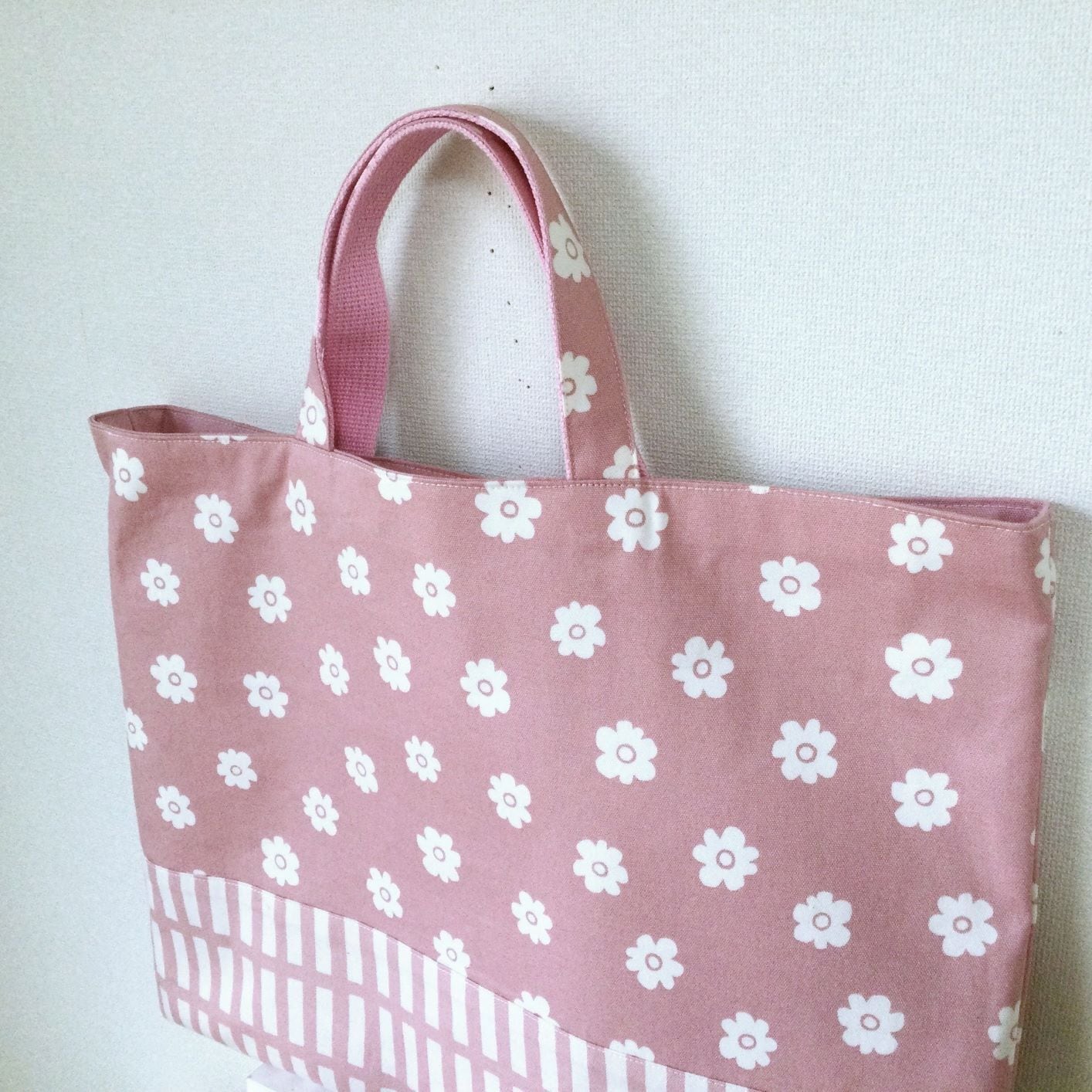 祝入園入学レッスンバッグ(スモーキーピンクお花×鍵盤ストライプ)
