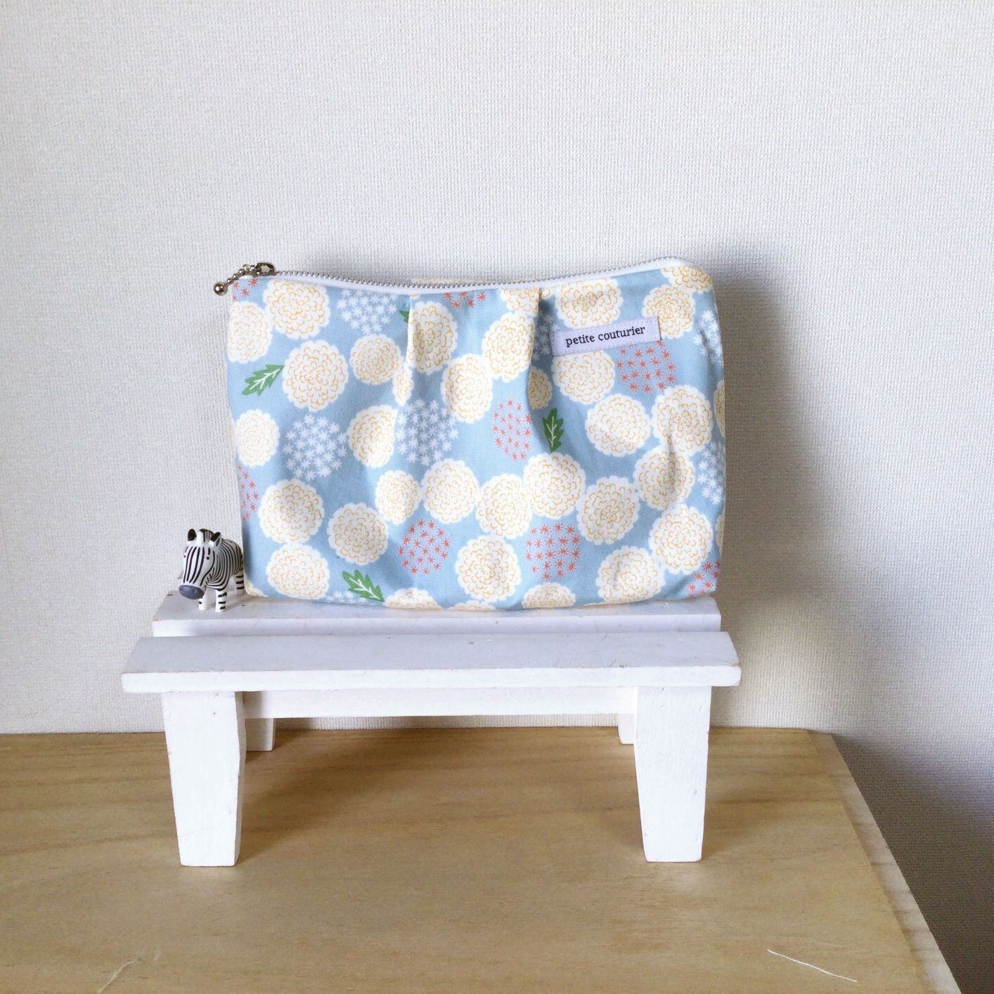 プレゼントに最適 ふっくらタックポーチ(ブルータンポポ)