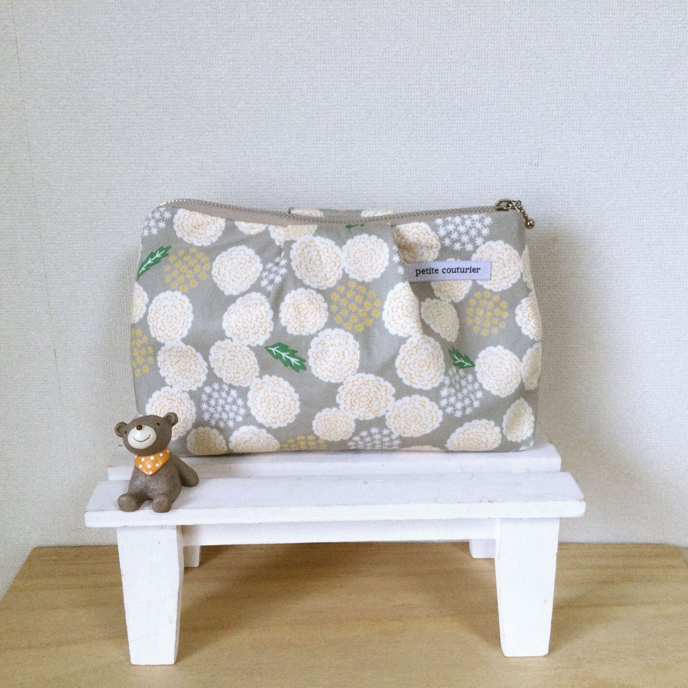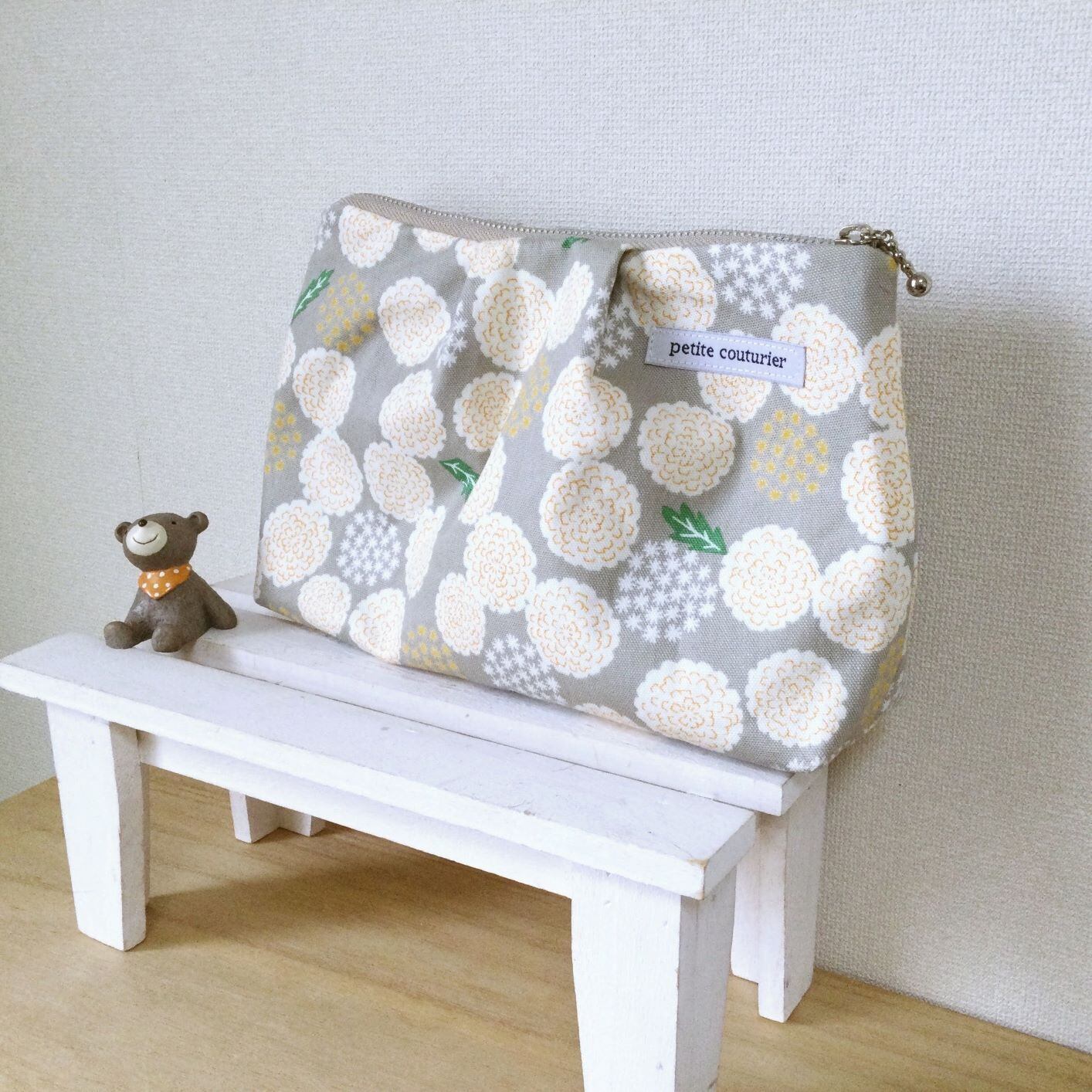 プレゼントに最適 ふっくらタックポーチ(グレータンポポ)