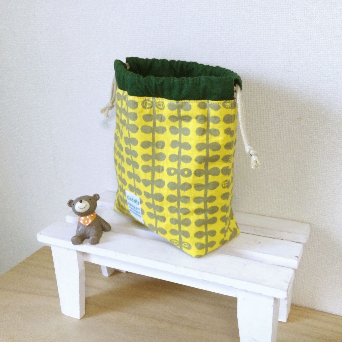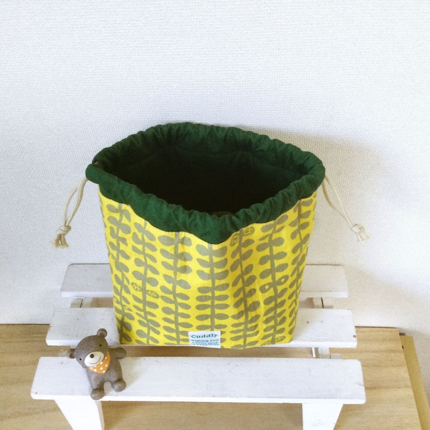 巾着袋 角型 コップ入れにも☆(北欧黄色葉っぱ)