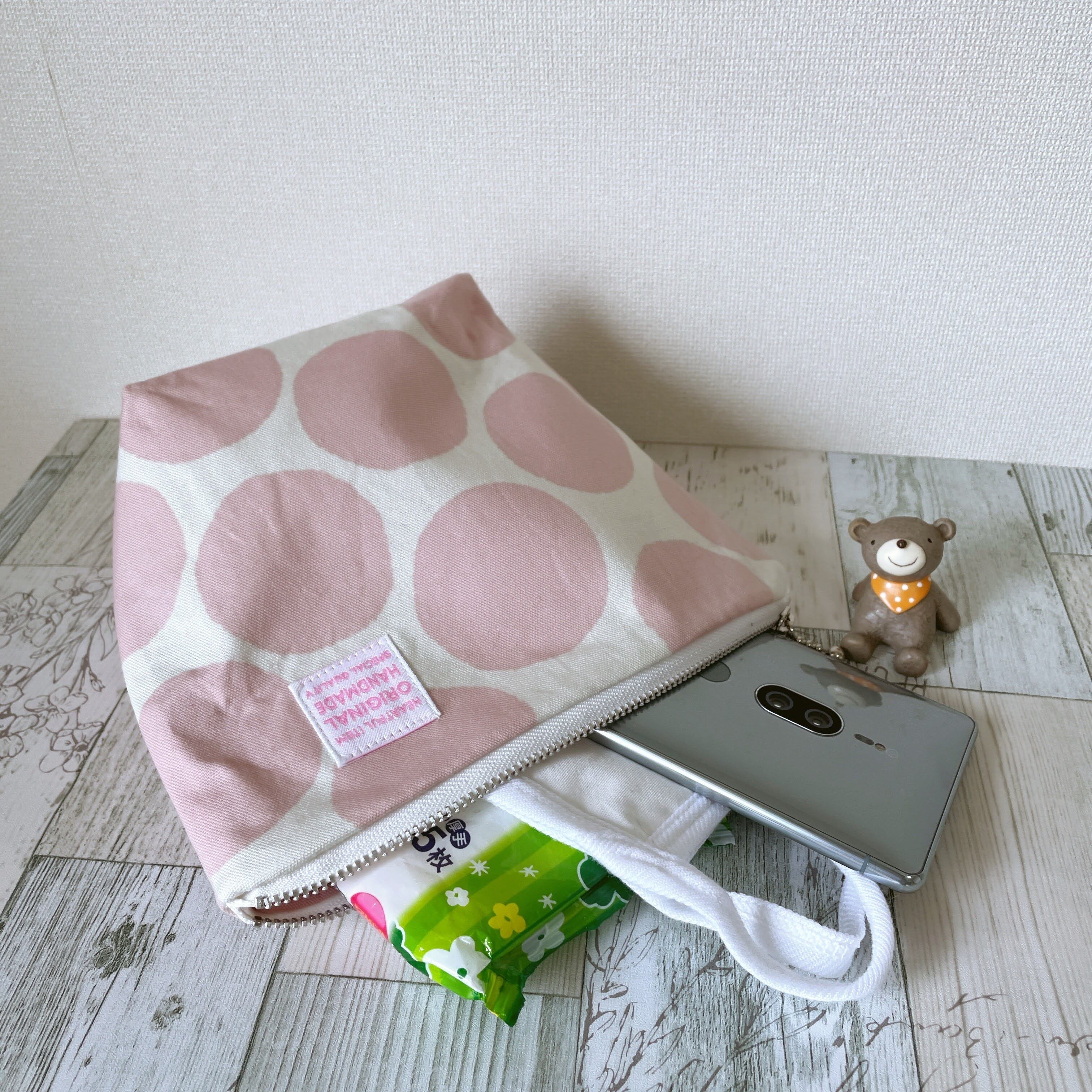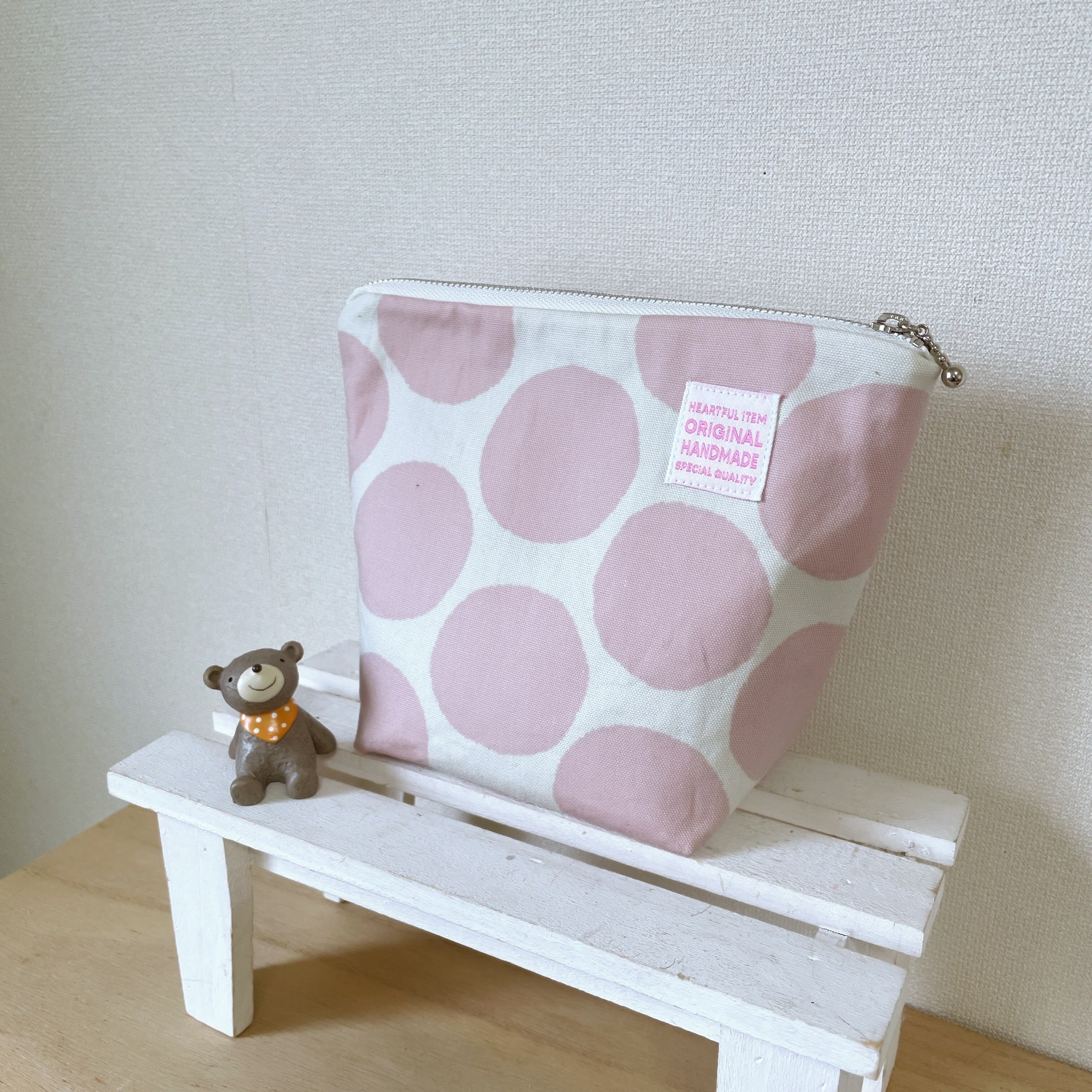 【受注作成】台形ポーチまち大(ピンクドット)