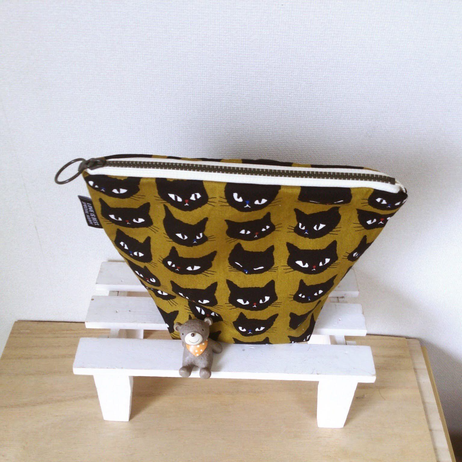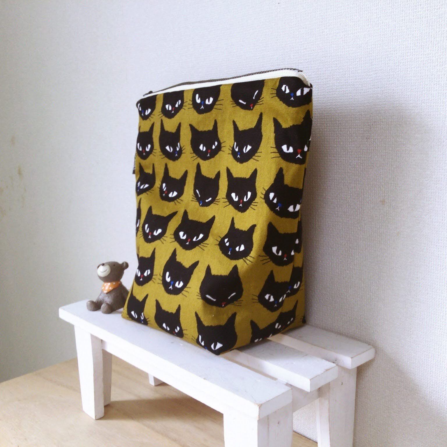 《受注製作》猫好きさん集まれ BIGポーチ縦長(猫イエローブラウン)