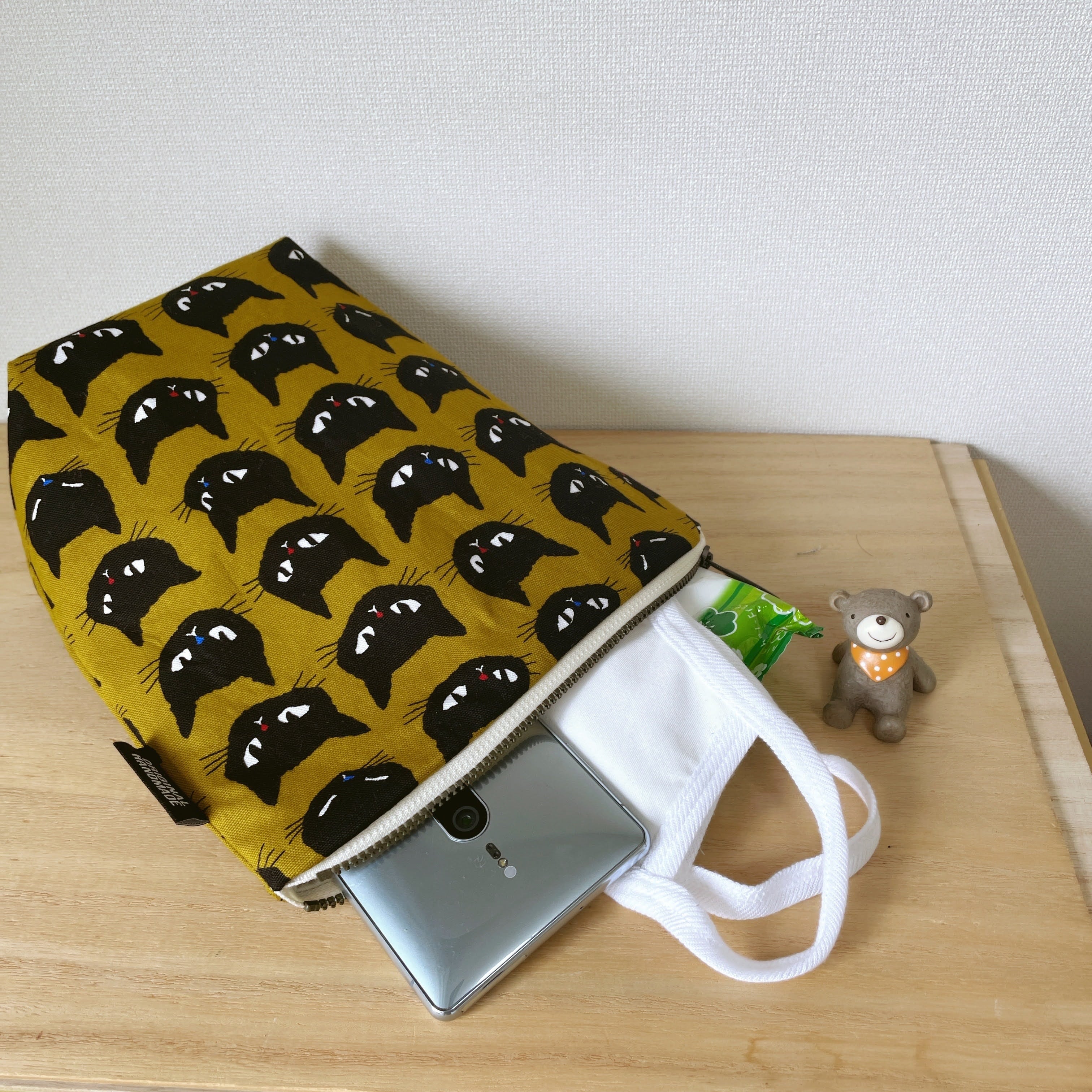 表布はしっかりしたコットンの猫柄☆