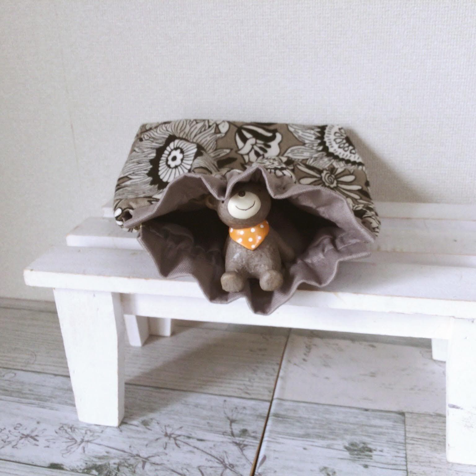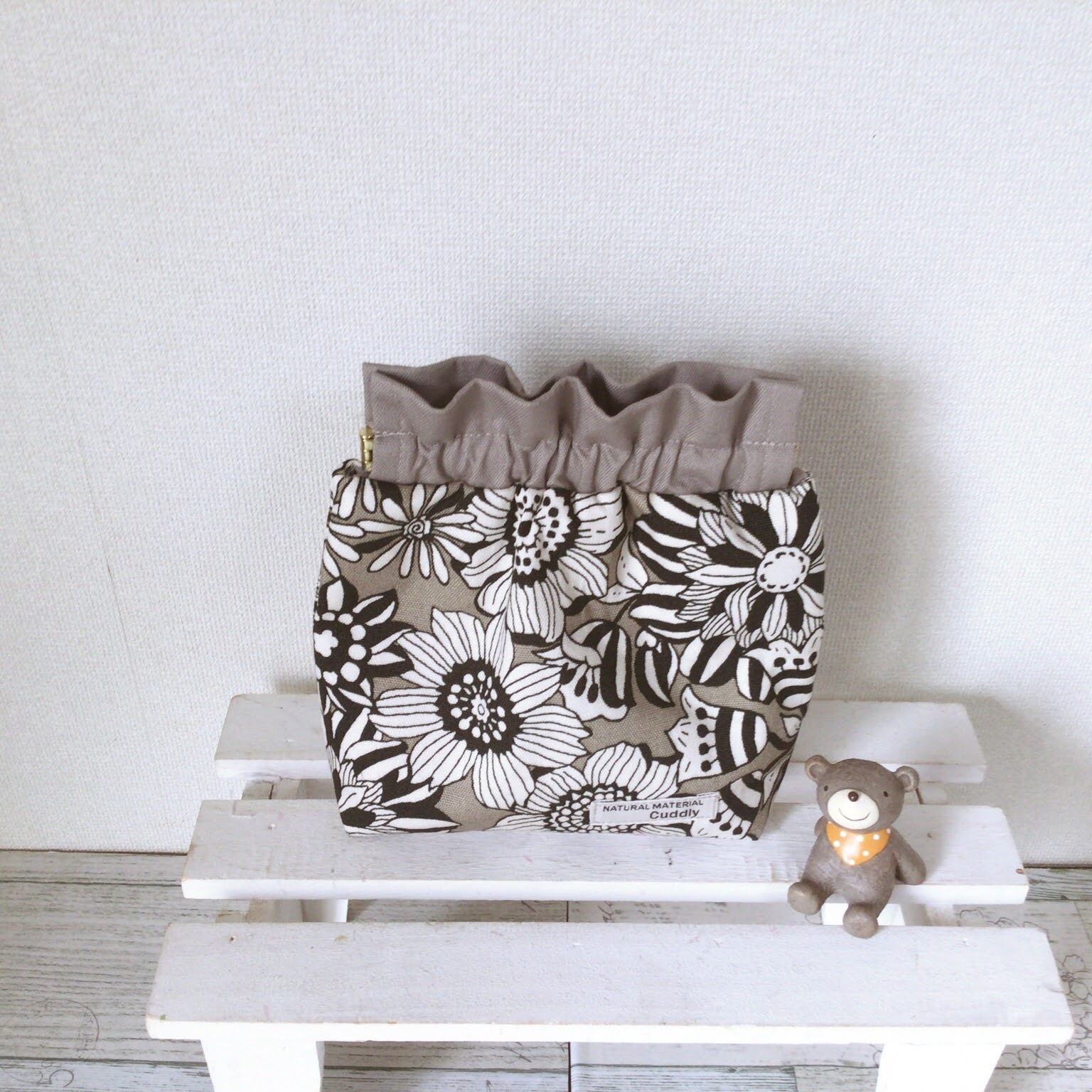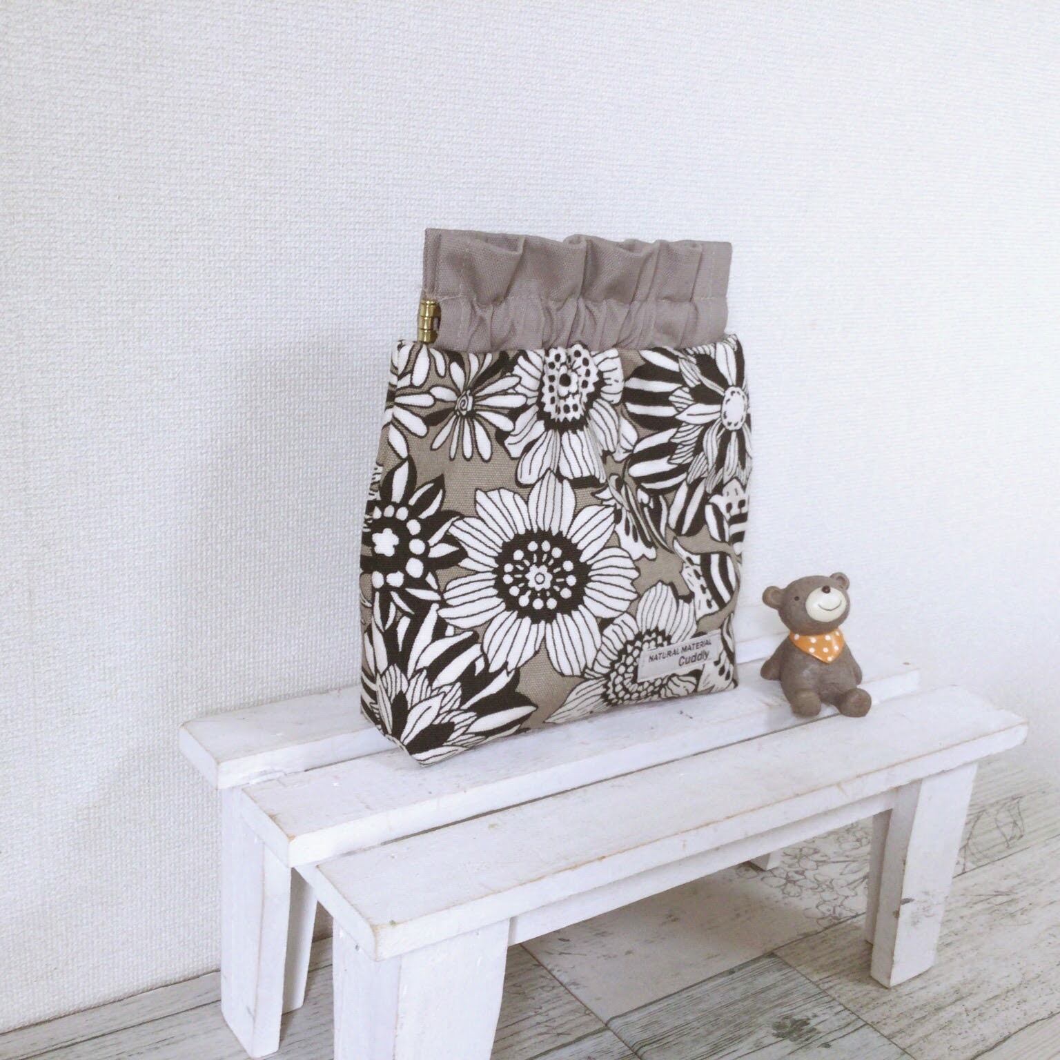 表布はコットンの大きなお花柄☆グレージュ地が柔らかい印象です。