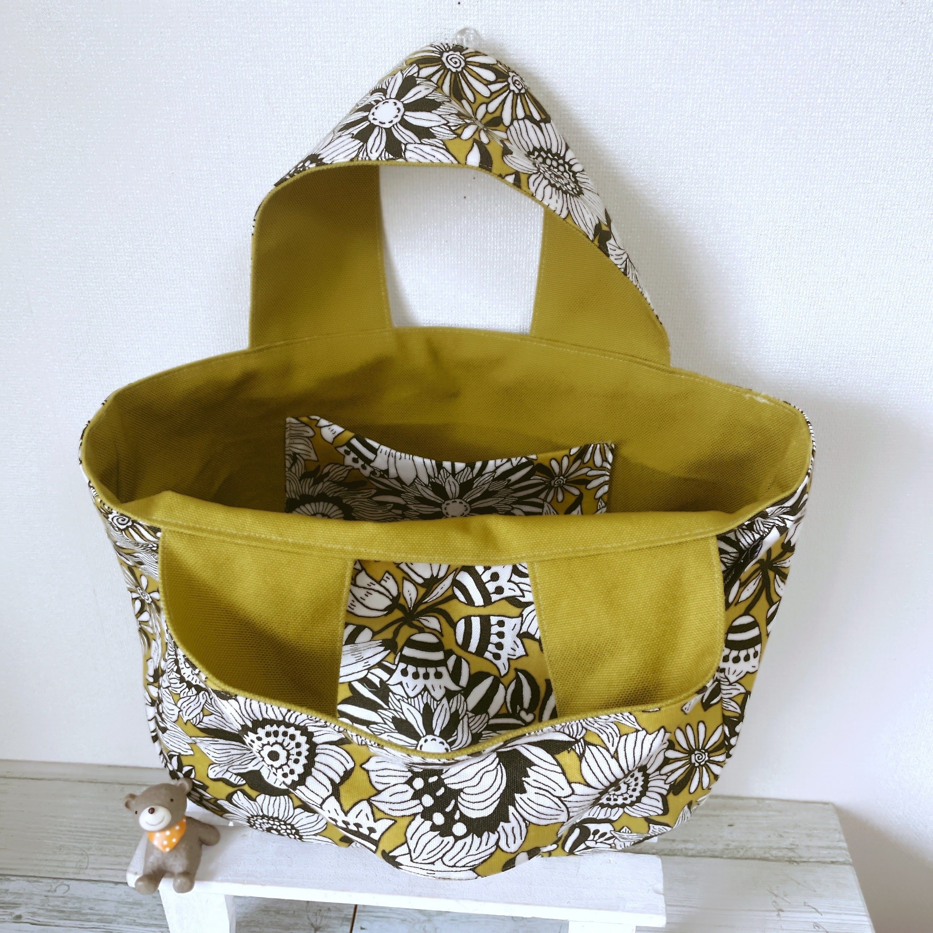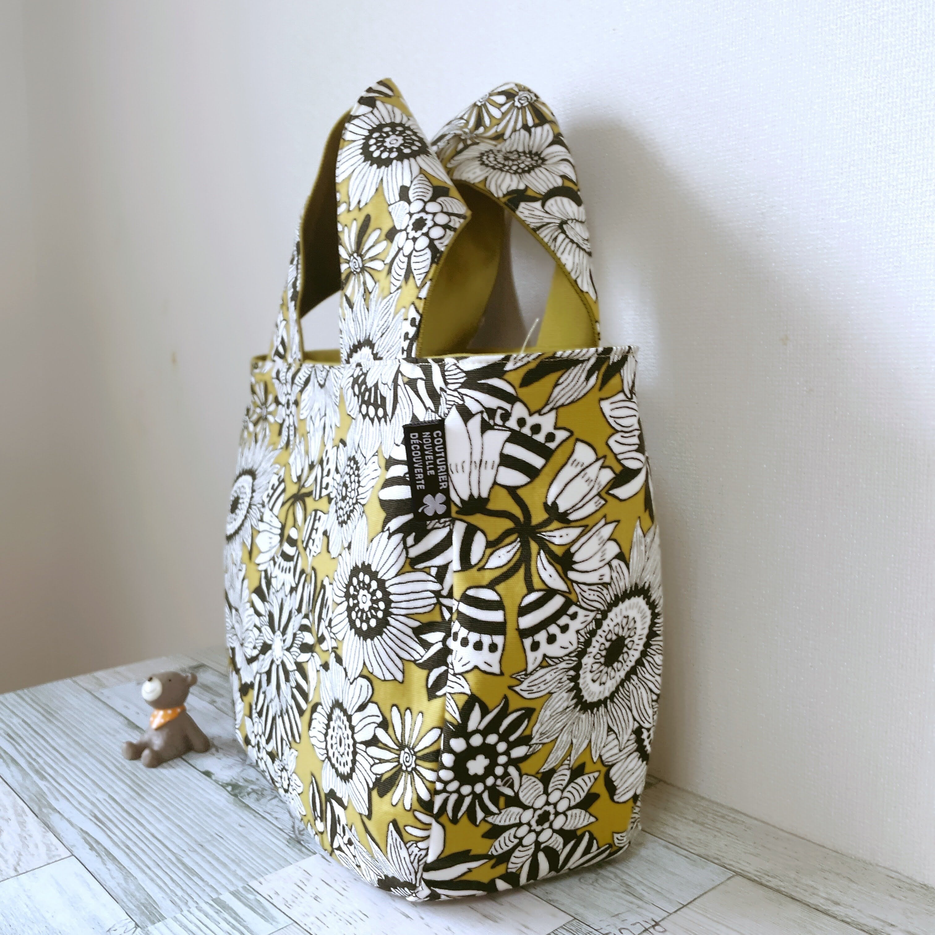【受注作成】ちょっと小さめ ころっとしたトートバッグ(マスタードイエロー花柄)