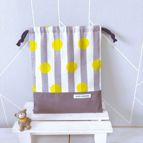 【祝入園入学準備】給食袋、ナフキンセット(グレーストライプ×イエロードット)