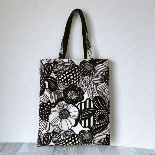 A4サイズがゆったり入るサブバッグすこし大き目(大きい花柄モノトーン)