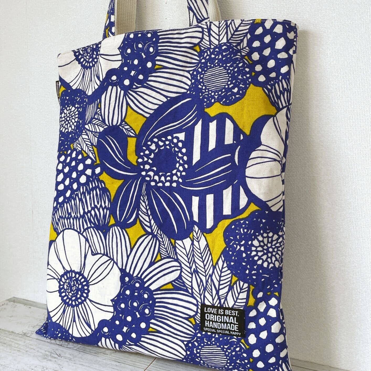 A4サイズがゆったり入るサブバッグすこし大き目(大きなお花柄黄色)