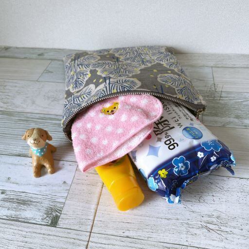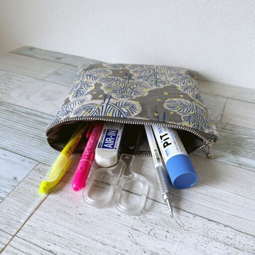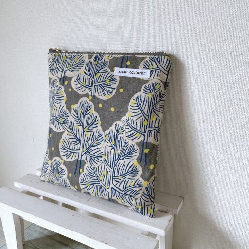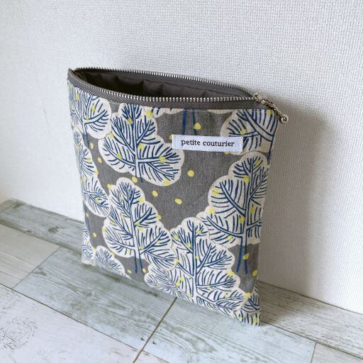 プレゼントに最適 ましかくぺったんこポーチ(北欧グレーtree)