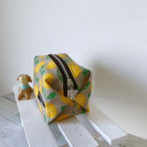 お手頃サイズのキャラメルポーチ(ブラウン北欧タンポポ)