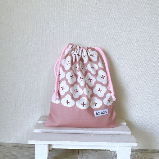 【祝入園入学準備】給食袋、ナフキンセット(ピンク連続お花)