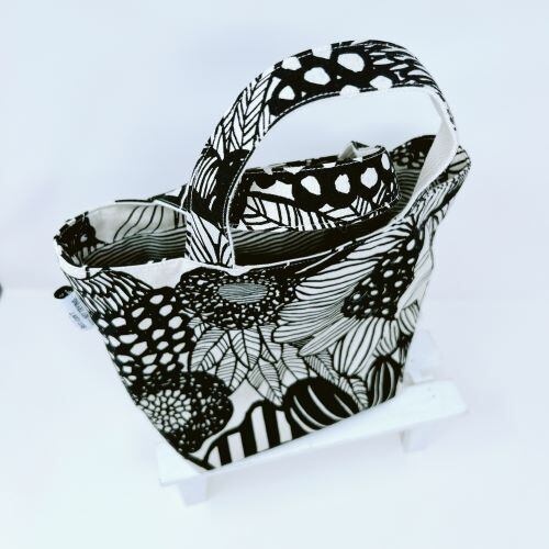 【受注作成】ちょっとしたおでかけに プレゼントに最適 ミニトート(モノトーン大花)