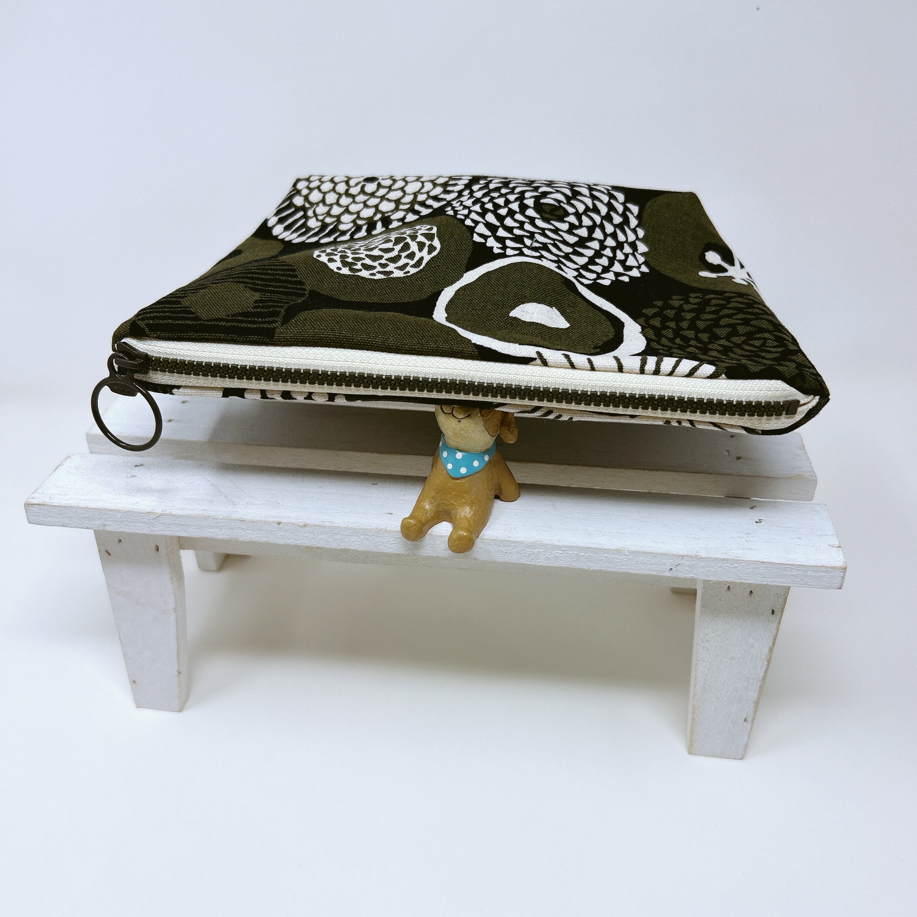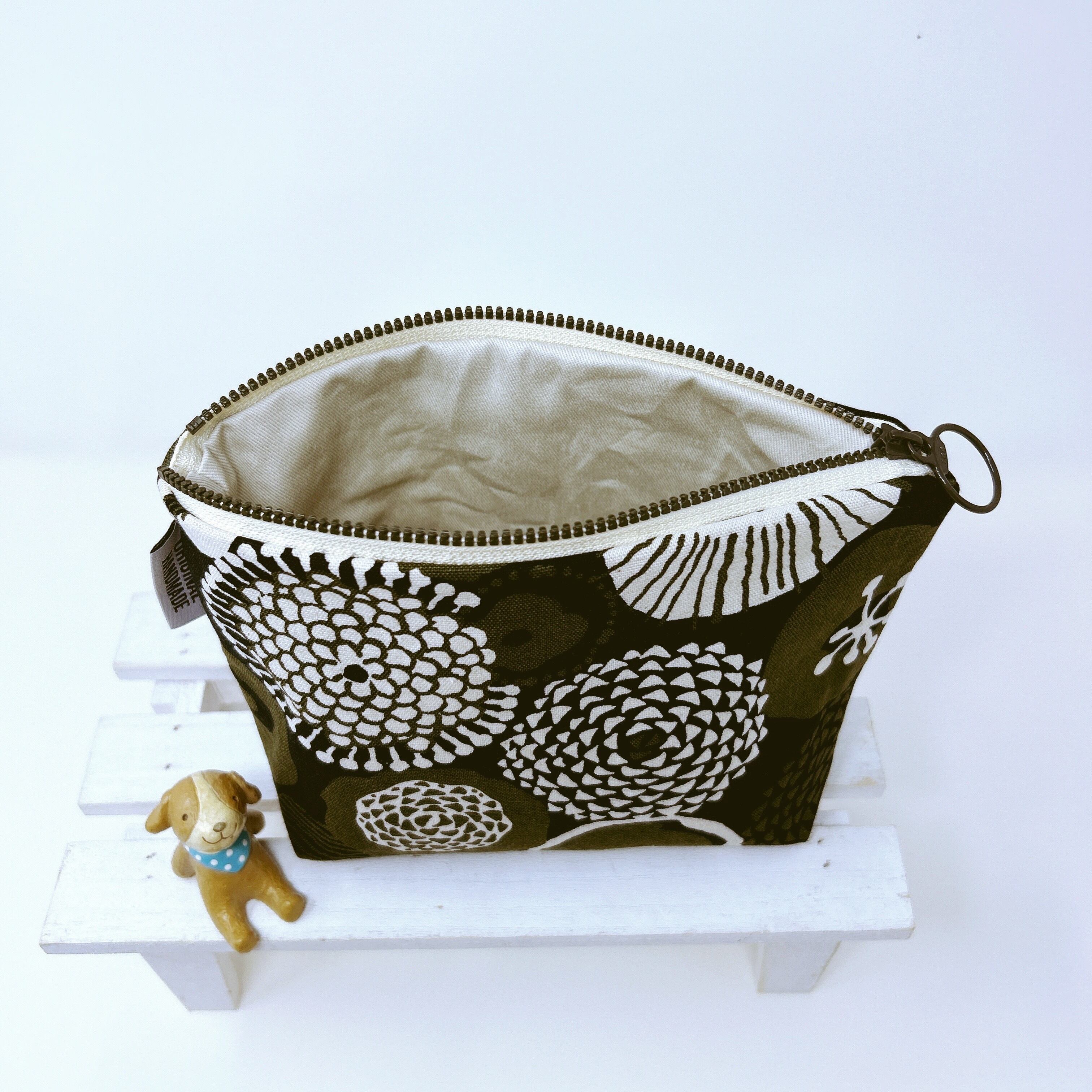 【受注作成】ベーシックな台形ポーチ(カーキ北欧)