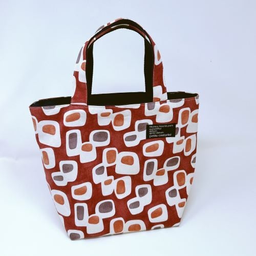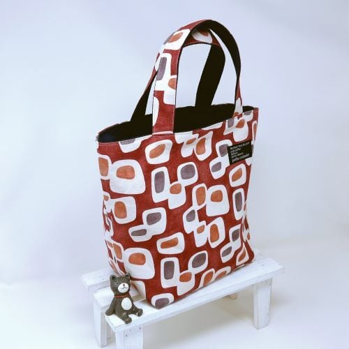 【受注作成】ちょっとしたおでかけに プレゼントに最適 ミニトート(幾何学四角えんじ)