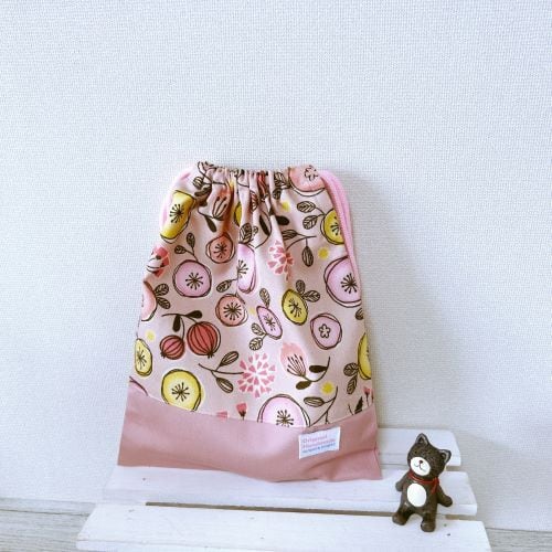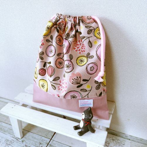 【受注作成】入園入学 給食袋、ランチョンマットセット(くすみピンク花)