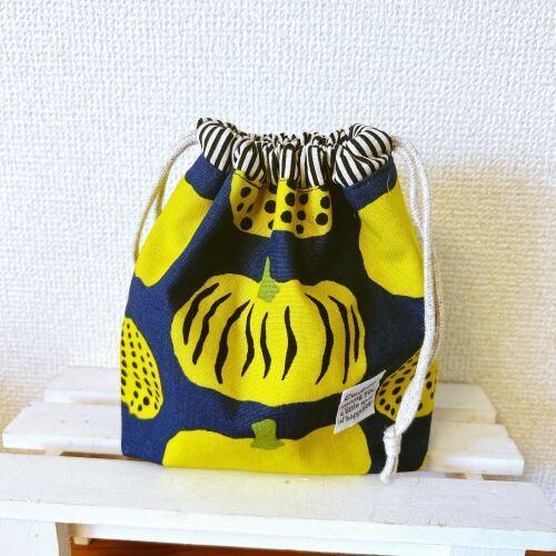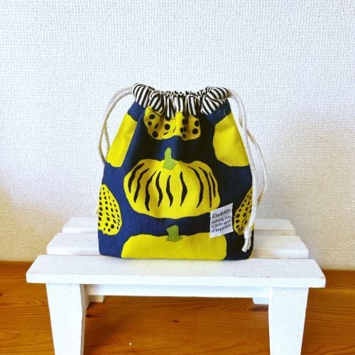 受注作成 巾着袋 角型 コップ入れにも☆(ネイビーカボチャ)