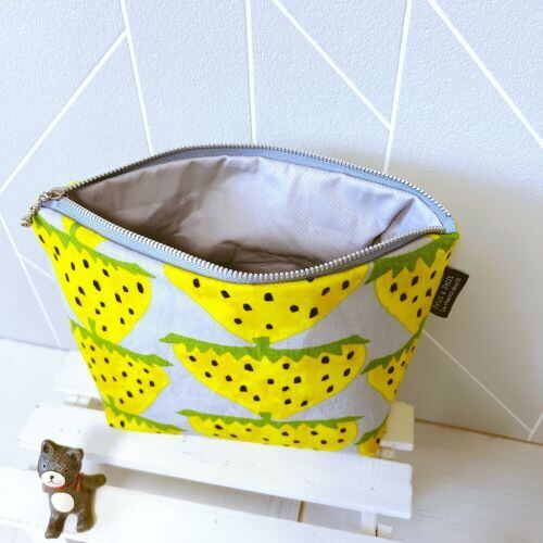 【受注作成】ベーシックな台形ポーチ大(イエローイチゴ)