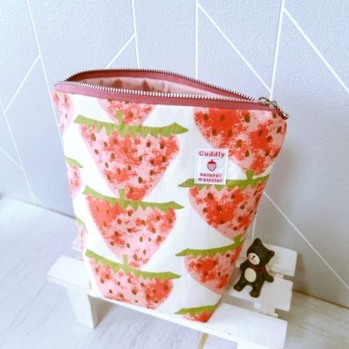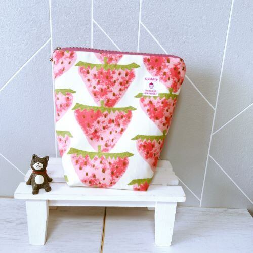 《受注製作》BIGポーチ縦長(薄ピンクイチゴ)