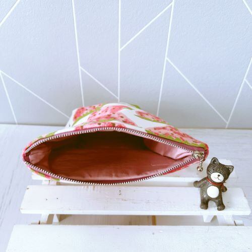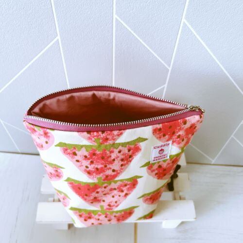 《受注製作》BIGポーチ縦長(薄ピンクイチゴ)のご案内です!