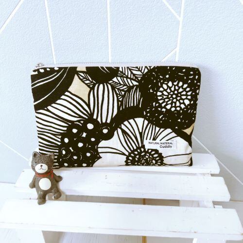 シンプルで洗練されたデザインのぺったんこポーチです。グレージュに大花柄があしらわれたこのポーチは、マスクポーチや通帳収納としてとても便利です。薄型ながらも十分な収納力を持ち、普段使いはもちろん、旅行やお出かけにも大活躍する一品です☆