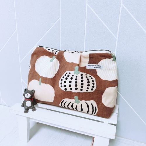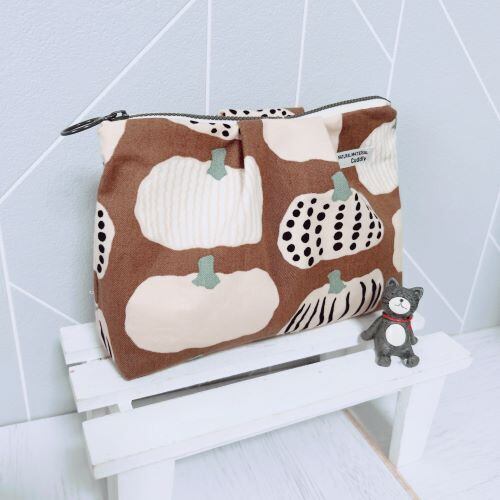 ふっくらとしたタックデザインが施されたこのポーチは、可愛いかぼちゃ柄が特徴で、見た目にも楽しいアイテムです。ブラウンの落ち着いたカラーリングが、どんなシーンにもぴったり合う使いやすさを提供します☆
