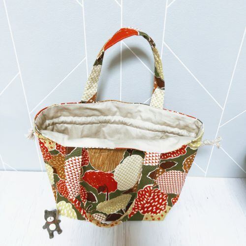 【受注製作】巾着バッグ(カーキグリーンぼたん)
