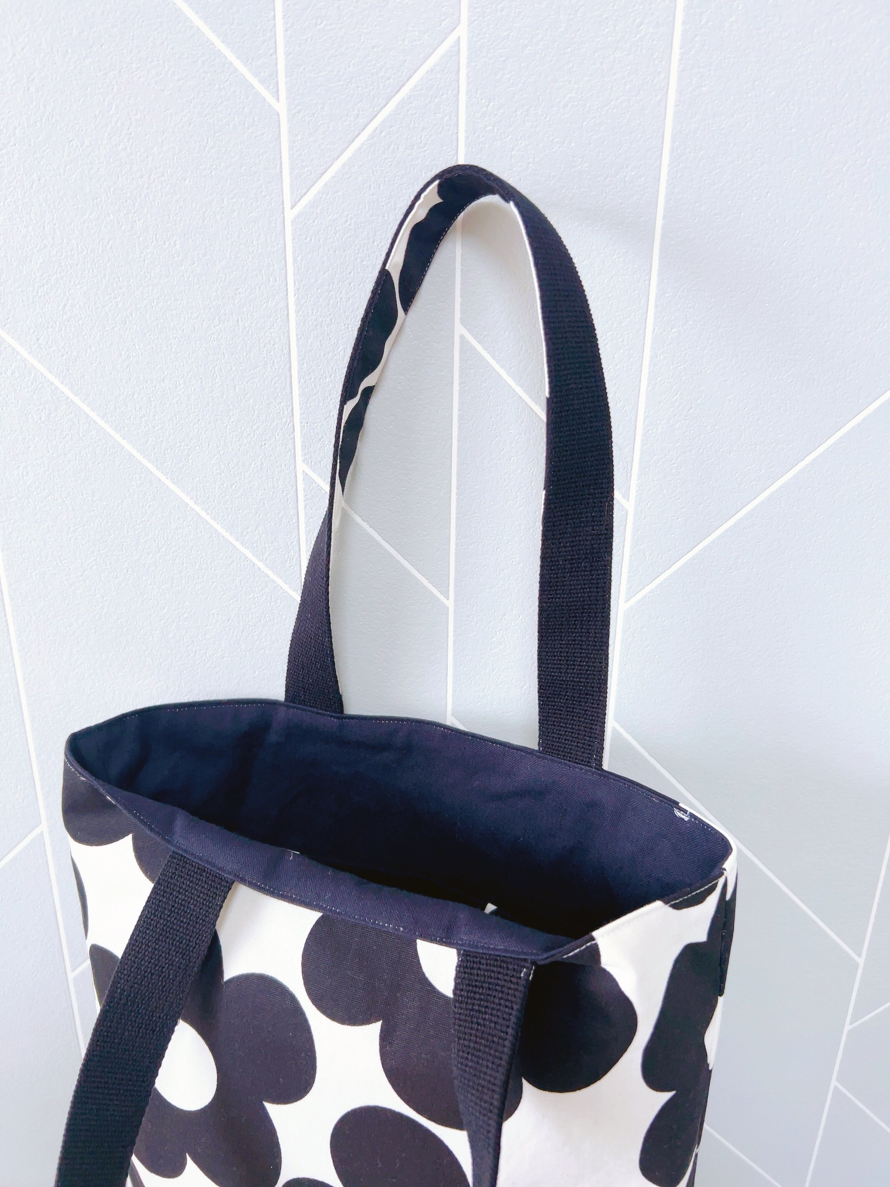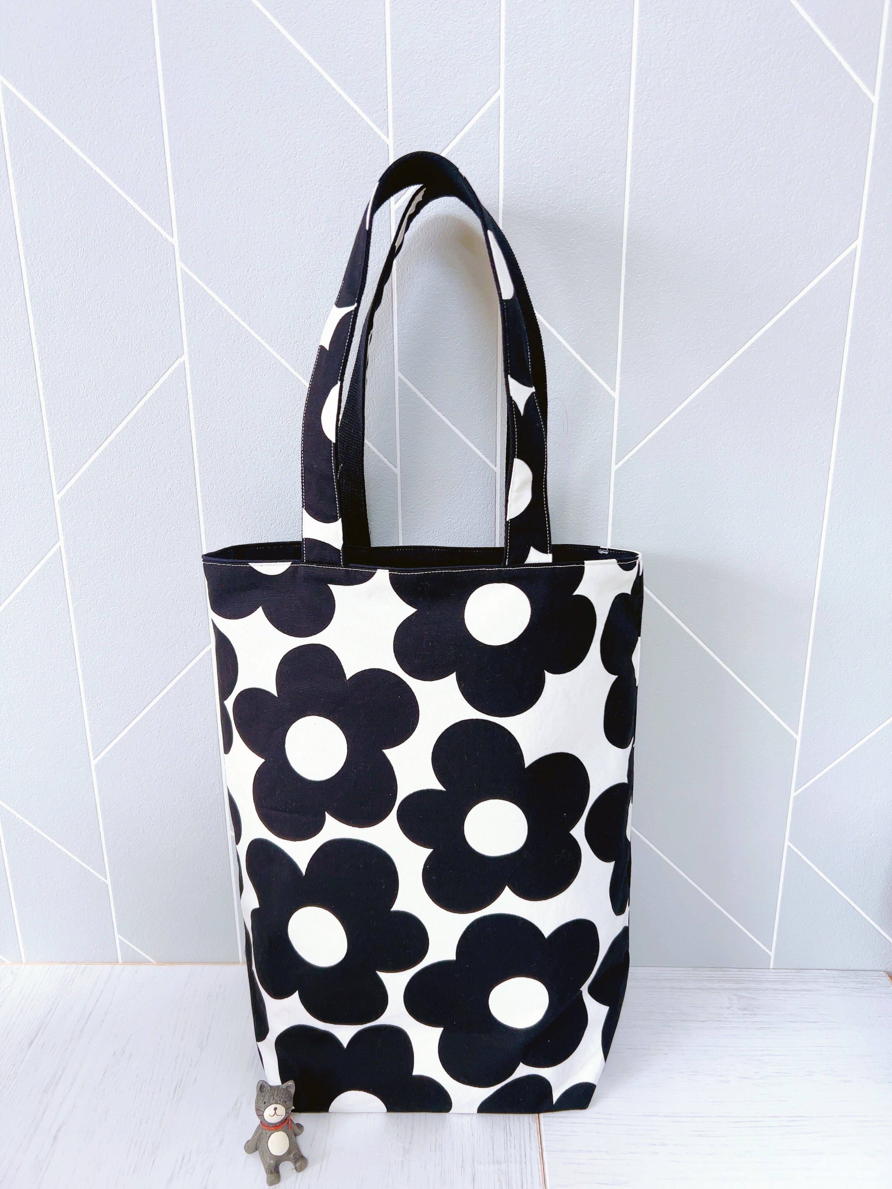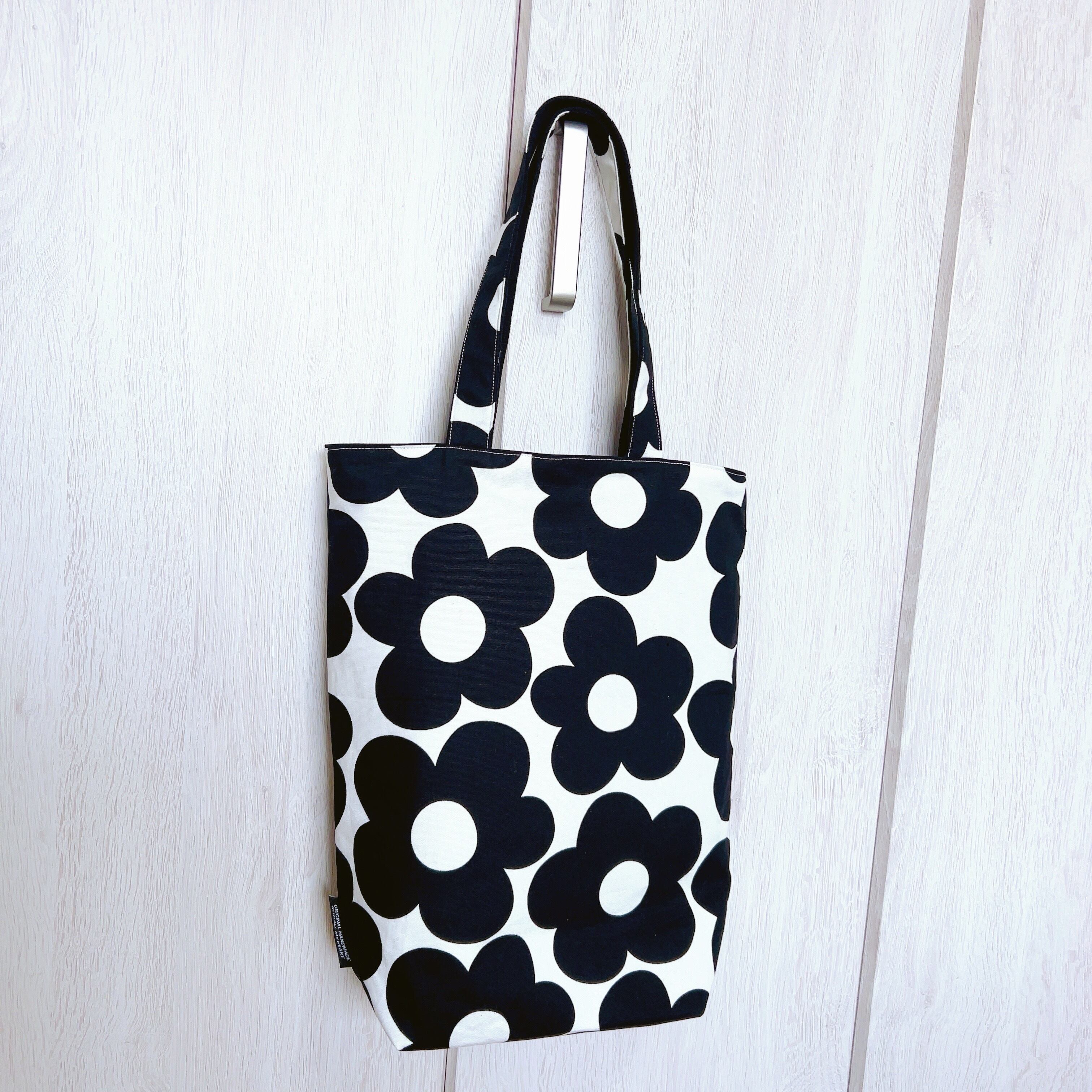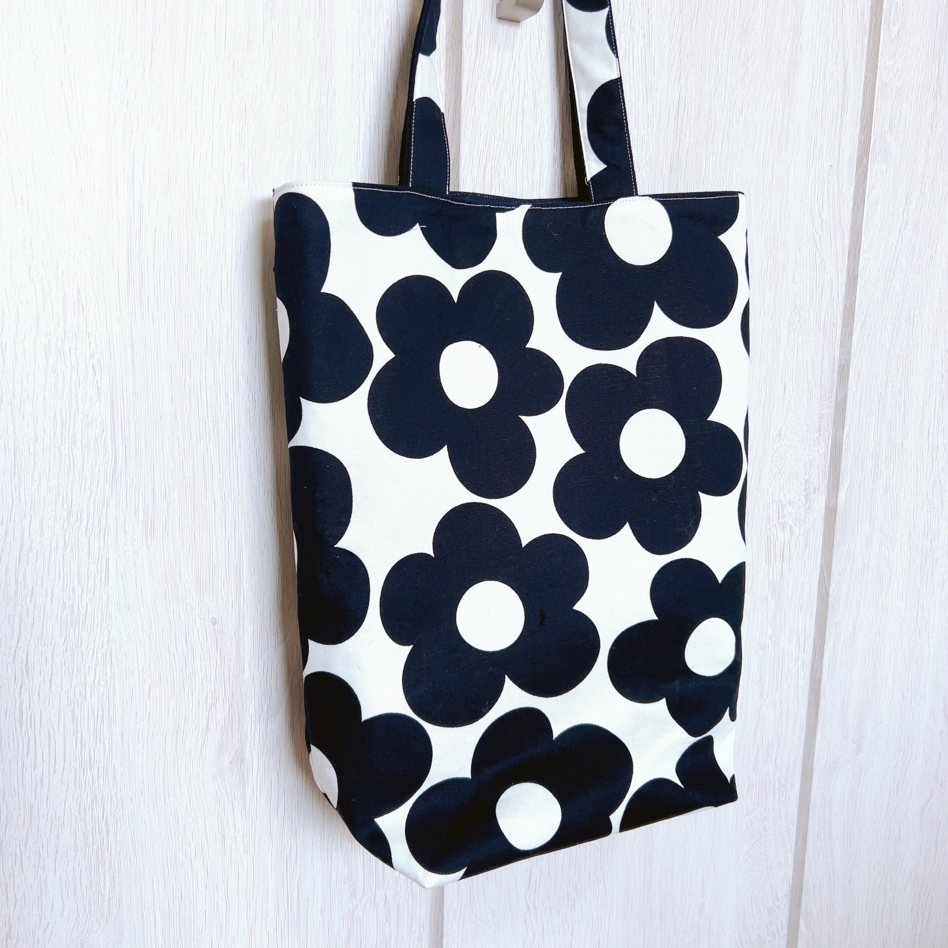 【受注作成】縦長トートバッグ(モノトーン花)