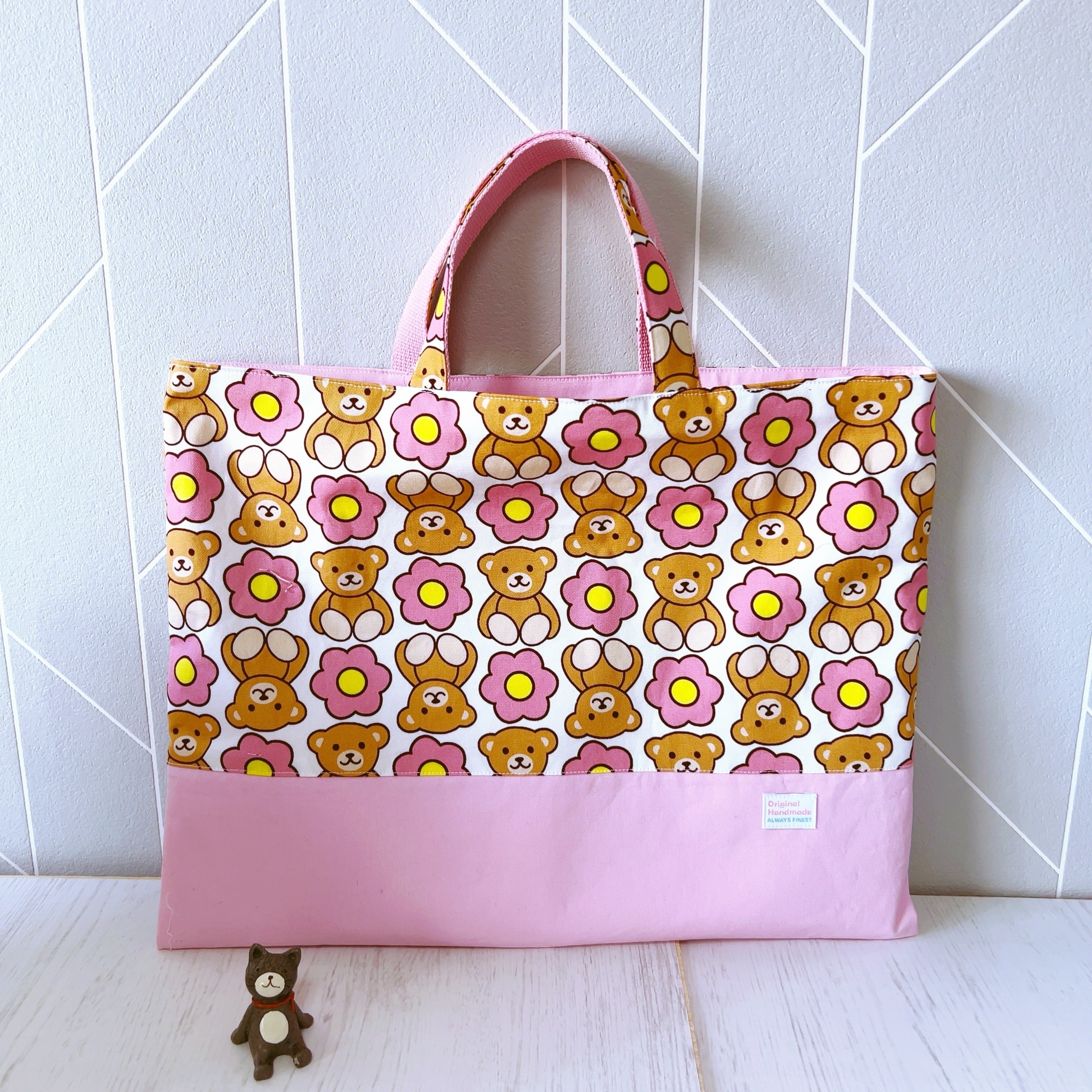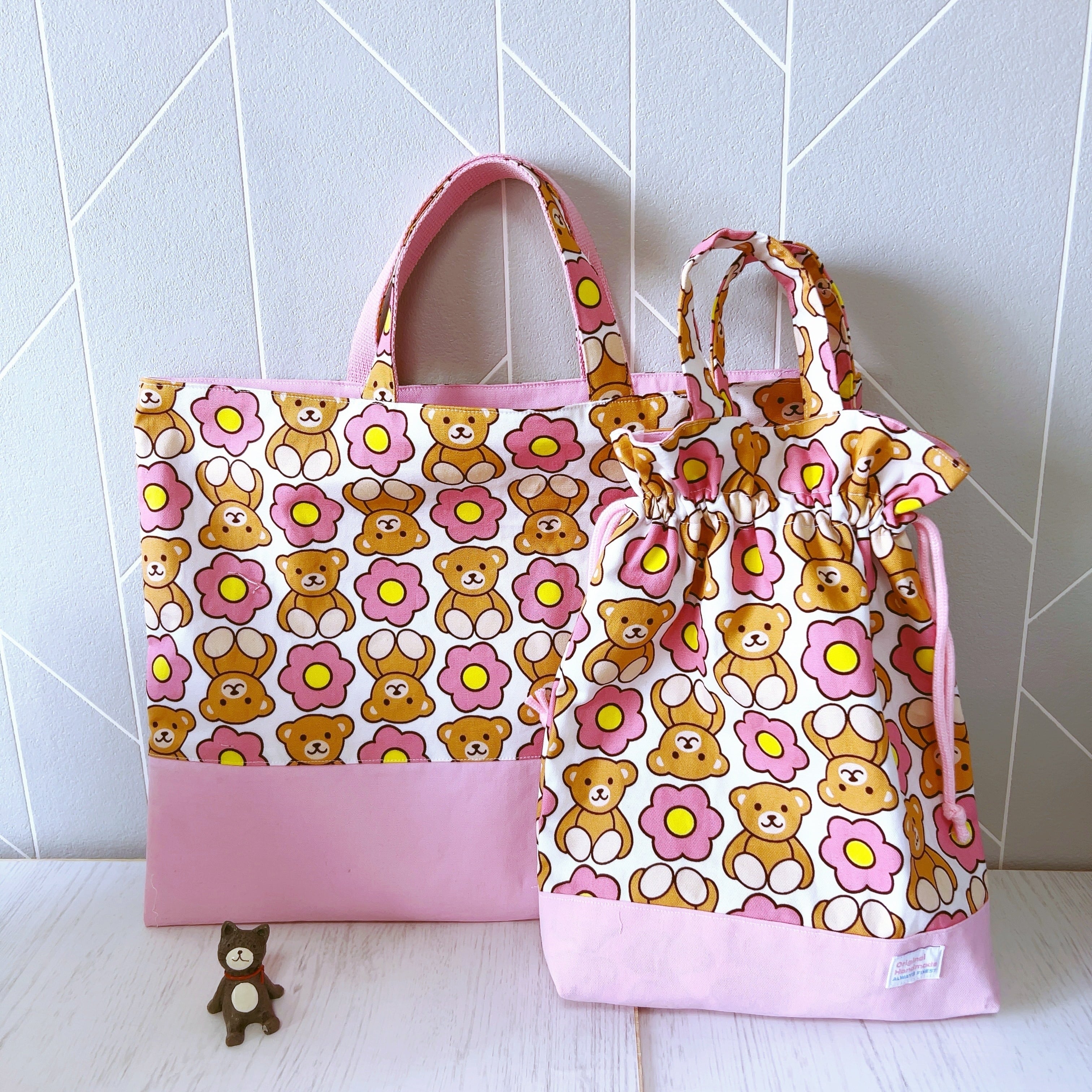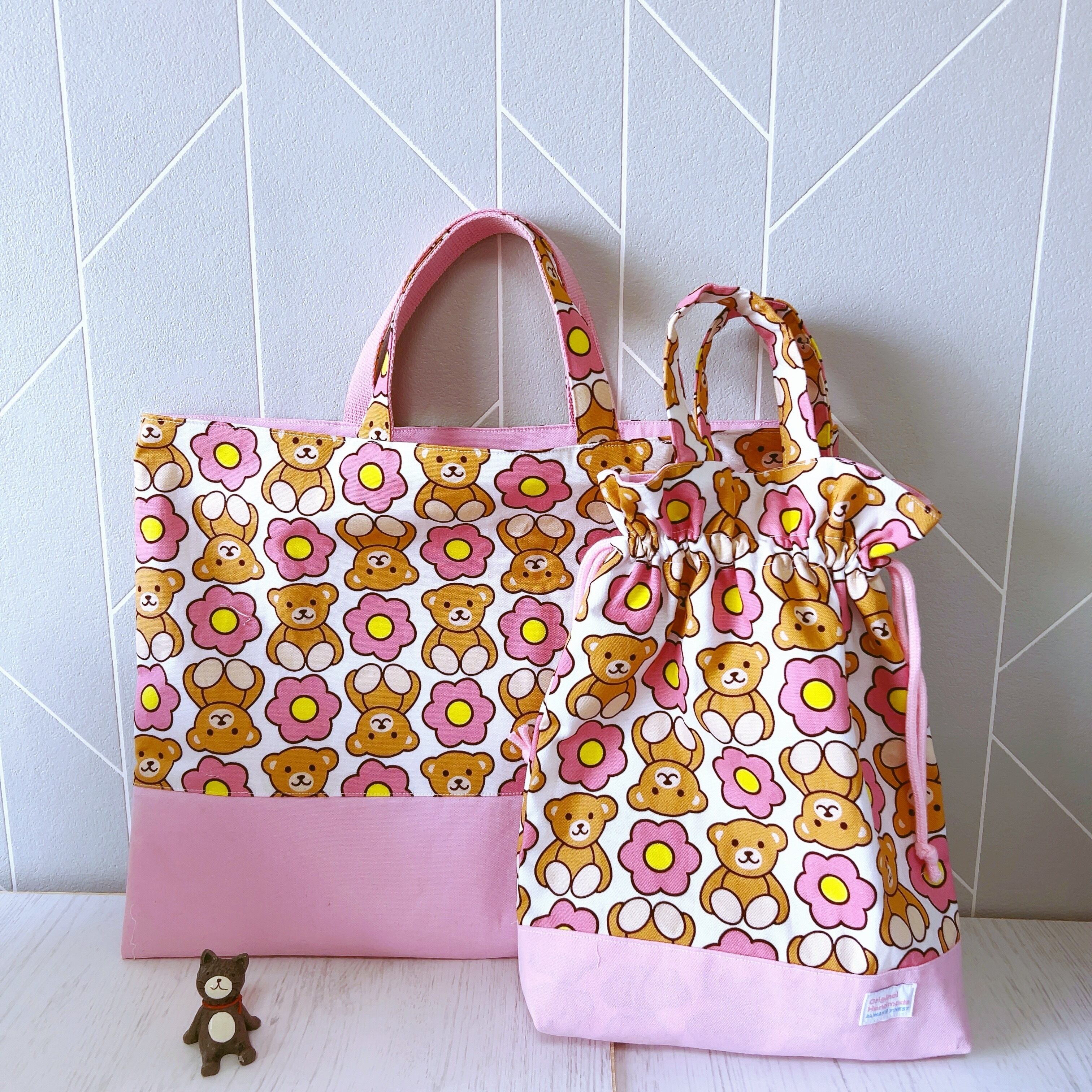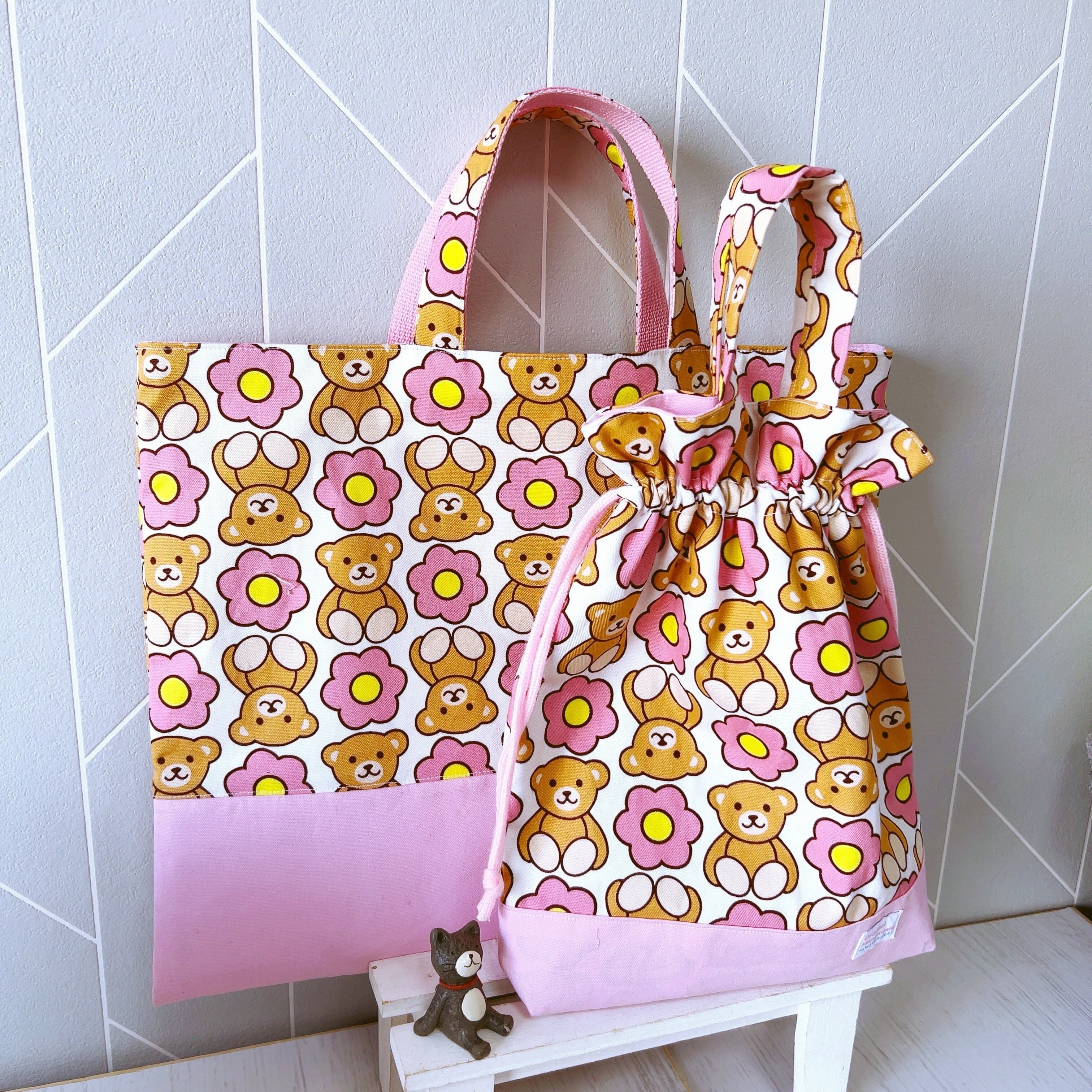 明るく可愛いピンクくま柄が特長のこのレッスンバックとシューズバックのセットは、入園や入学のお祝いにぴったりのアイテムです☆ お子様の大切な瞬間を一層特別なものにしてくれます。大きめのサイズでたっぷり収納できるので、体操着や教科書、絵本など様々なアイテムを手軽に持ち運べます。