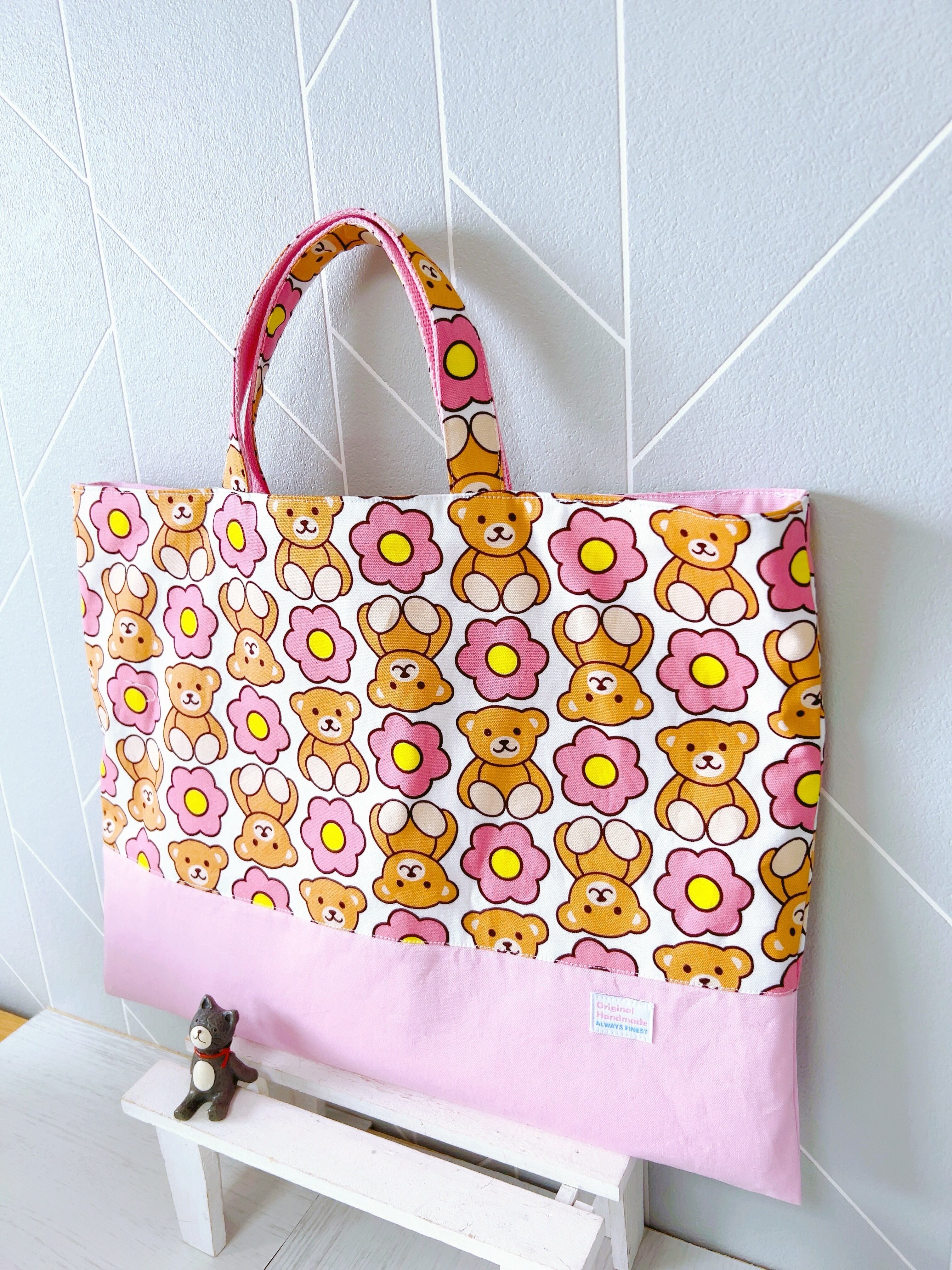 【受注作成】レッスンバック、シューズバックセット(ピンクBIGくま)