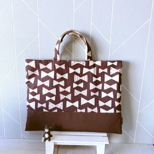【受注作成】祝入園入学レッスンバッグ(ブラウンーリボン)